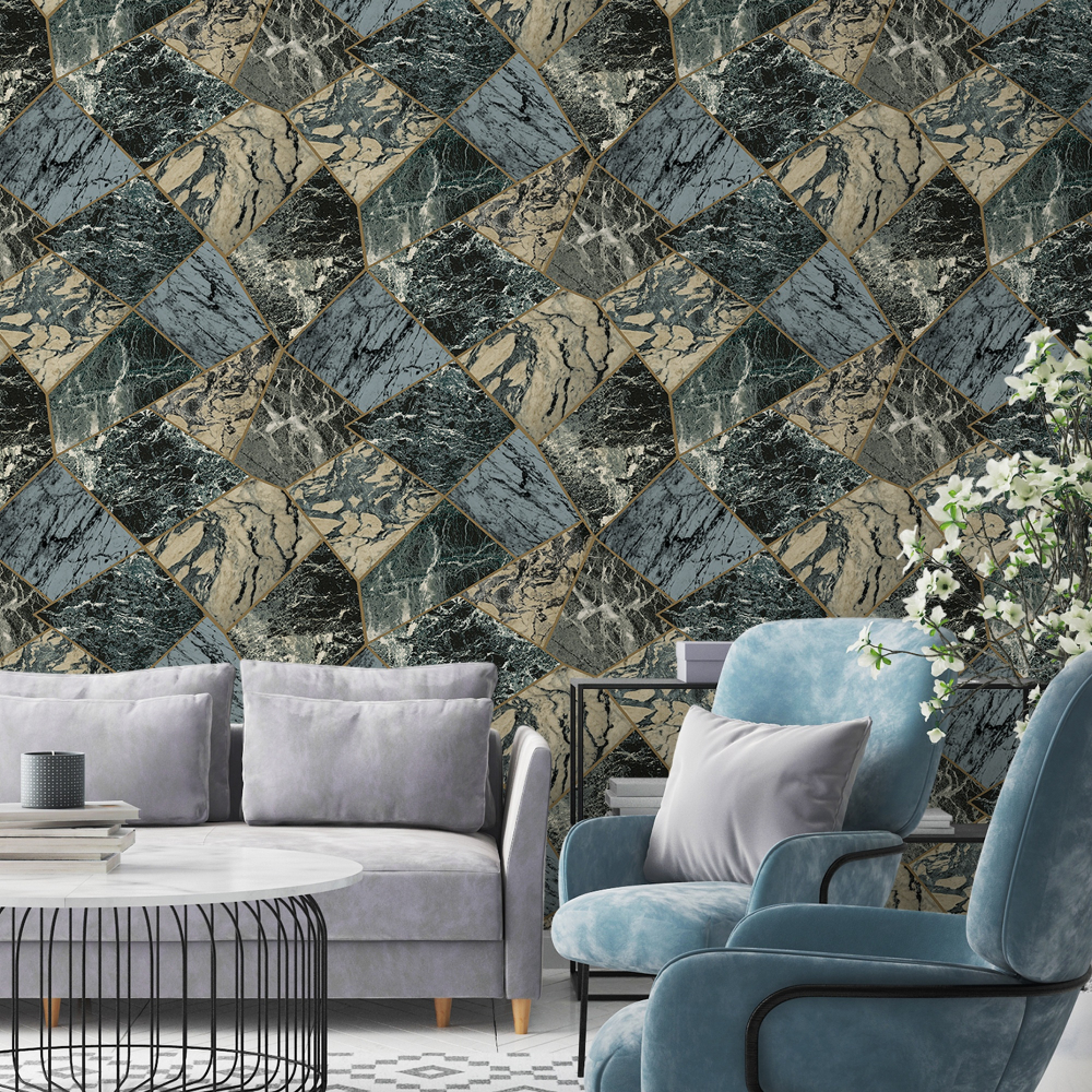 Calculate QuantityThis contemporary marble/geometric effect wallpaper from Grandeco is one to look out for! Featuring a textured geometric print with marble fill, set on a textured blown vinyl for a truly mesmerising finish. This wallpaper is perfect to use on a large wall area such as hallways and stairs and would definitely make a fabulous feature wall. Available In other colours, please order a sample for true colour and texture.
