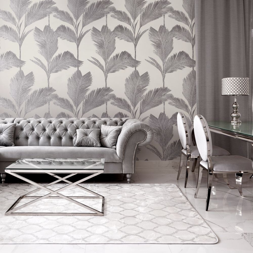 Alessia Leaf Grey & Metallic Silver Italian Vinyl Wallpaper 210