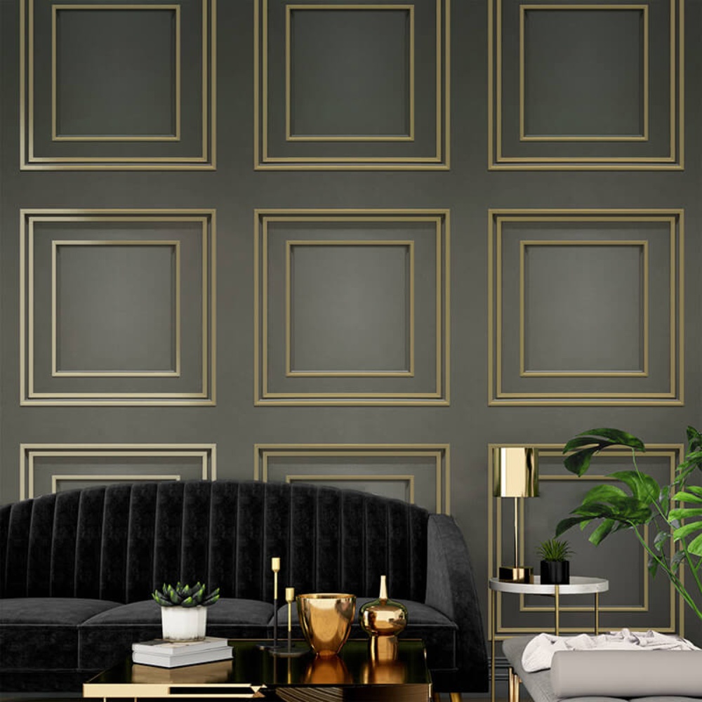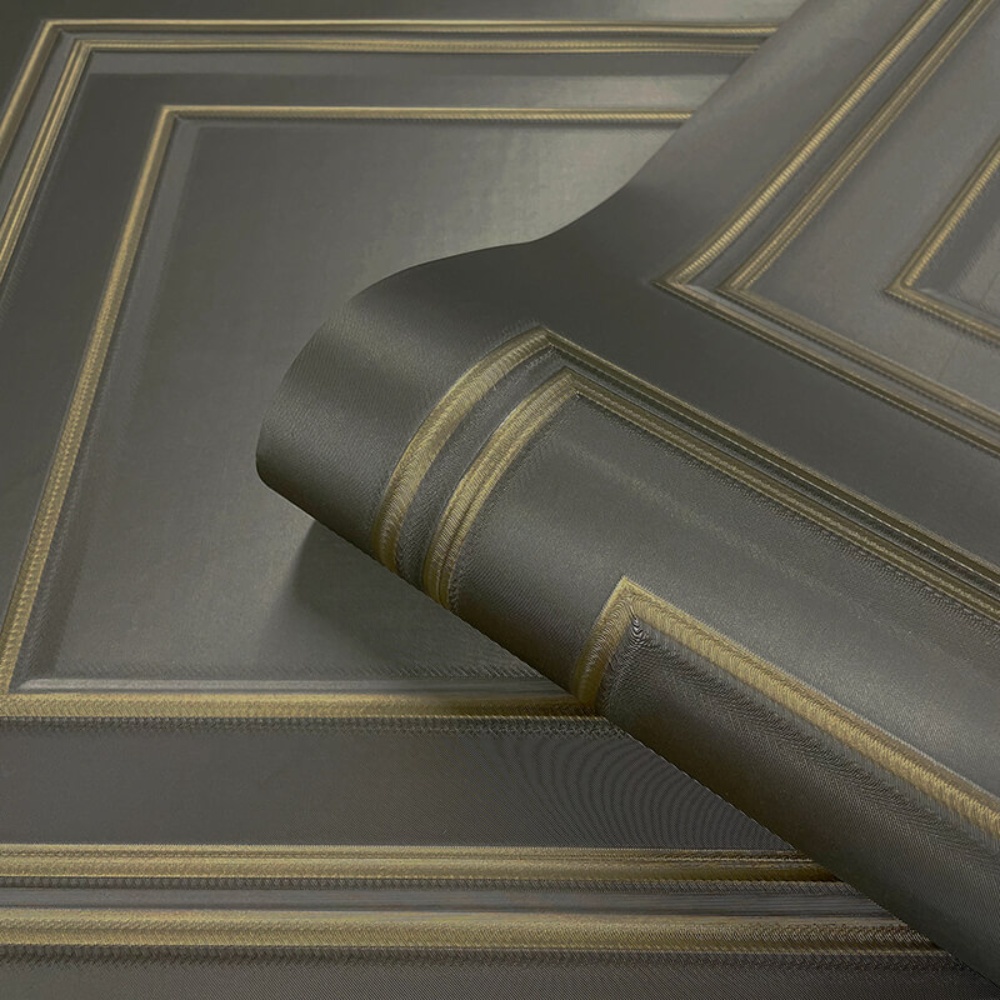 Amara Panel Effect Gunmetal & Metallic Gold Italian Vinyl Wallpaper 7386