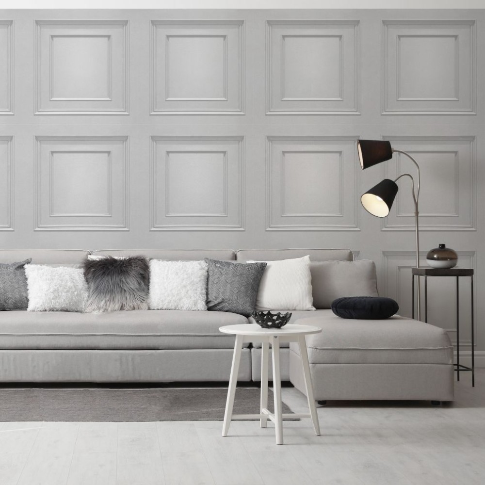 Amara Panel Effect Light Grey Italian Vinyl Wallpaper 7376