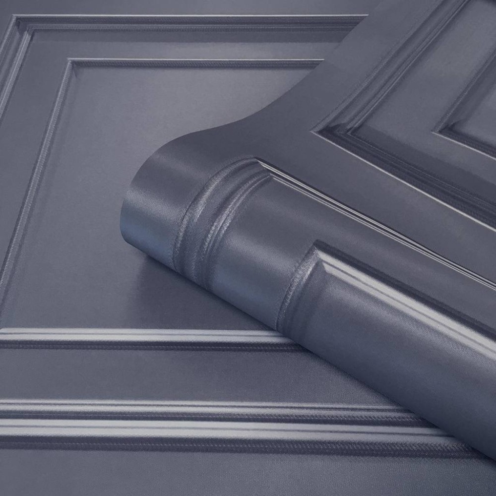 Amara Panel Effect Navy Blue Italian Vinyl Wallpaper 7375