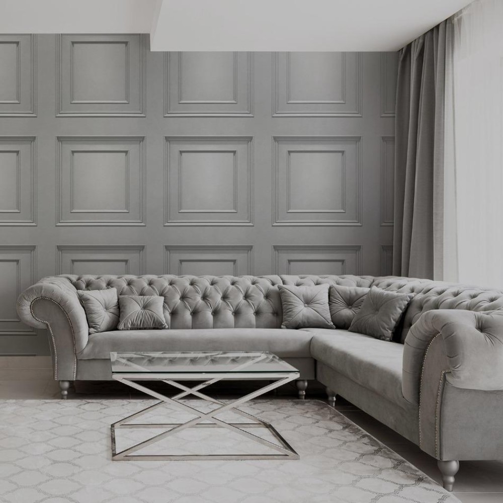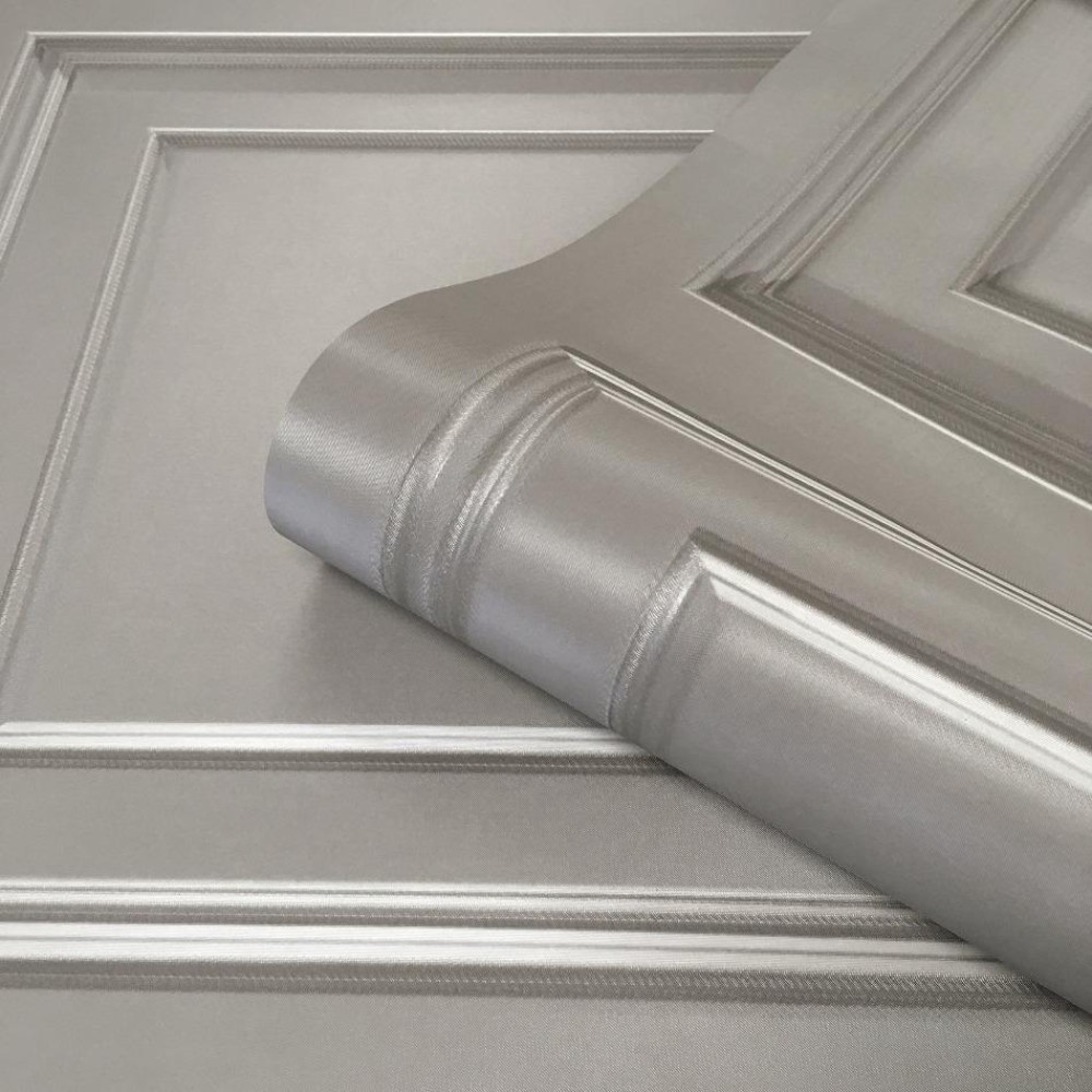 Amara Panel Effect Silver Italian Vinyl Wallpaper 7374