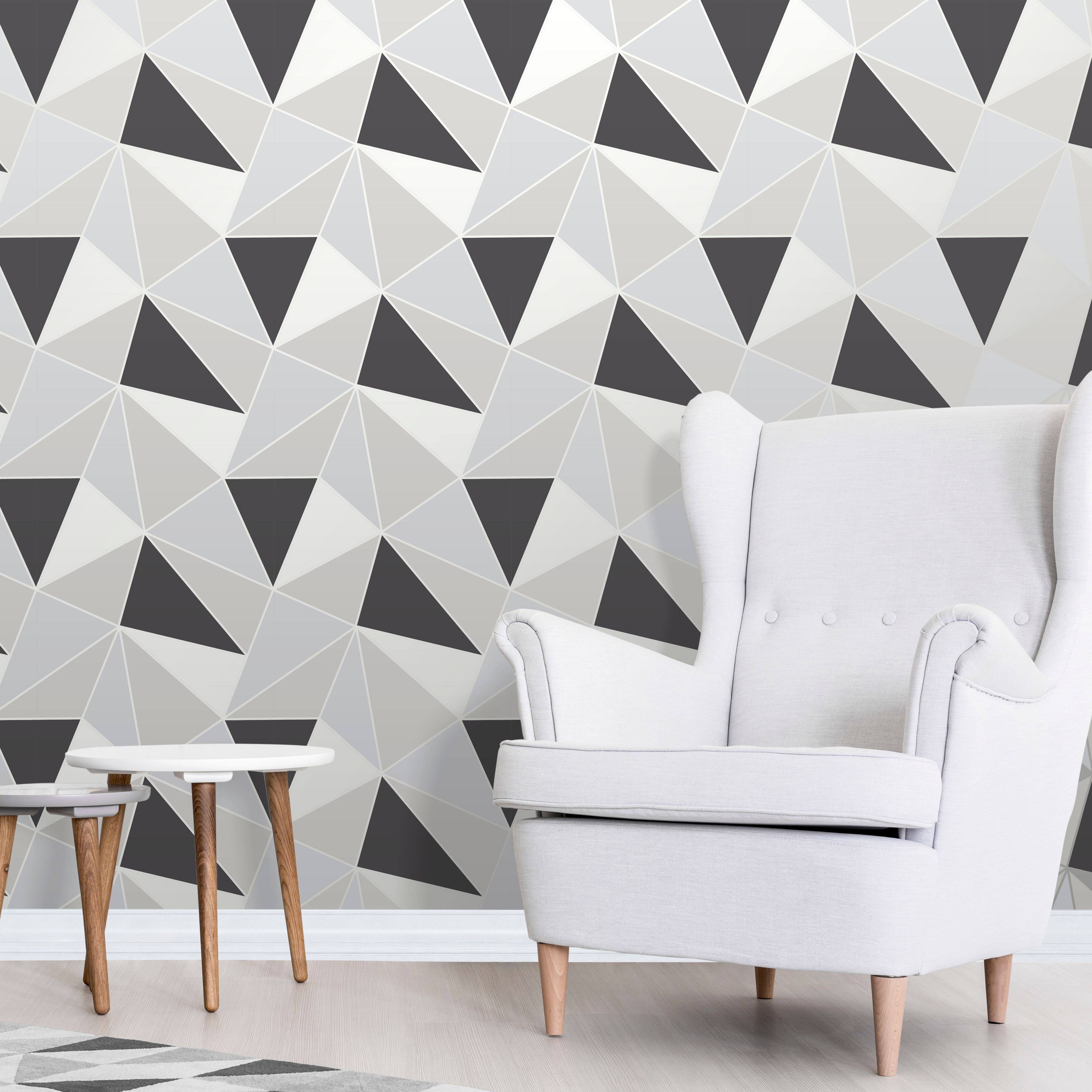 Apex Geo Black & Silver Geometric Wallpaper FD41994