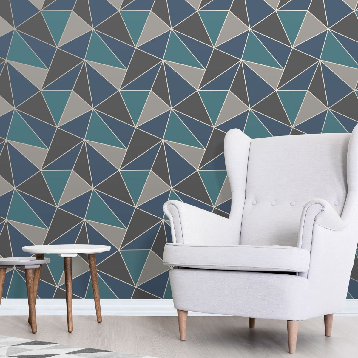 Apex Geo Multi Blue & Grey Geometric Wallpaper FD42001