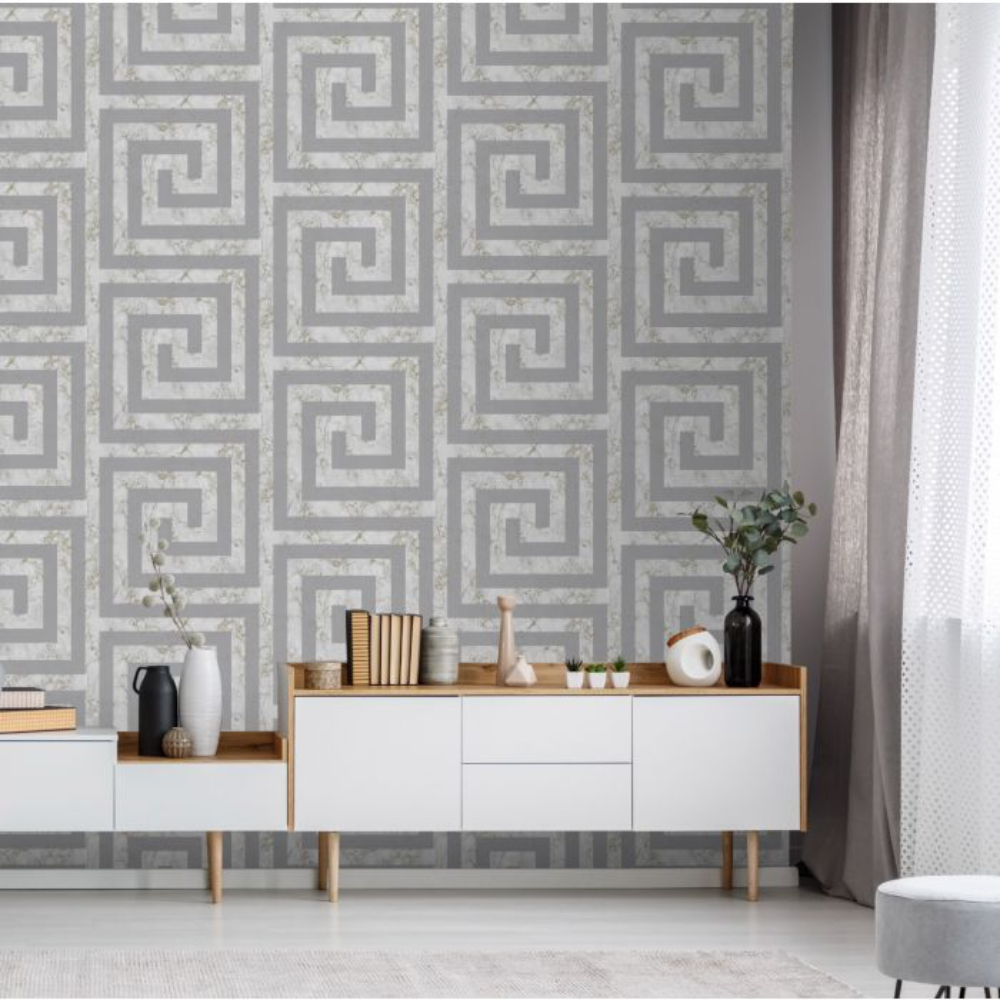 Calculate QuantityThis lovely Greek key-inspired paper promises to lend any living room in your home an opulent and warm vibe. It has a stunning marble backdrop that is given to life with a glossy textured fill. For that crucial sparkle look, this wallpaper is finished with a trace of glitter.