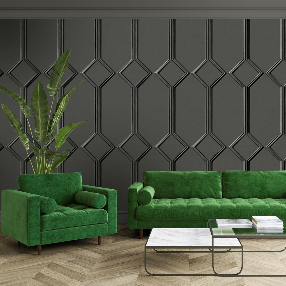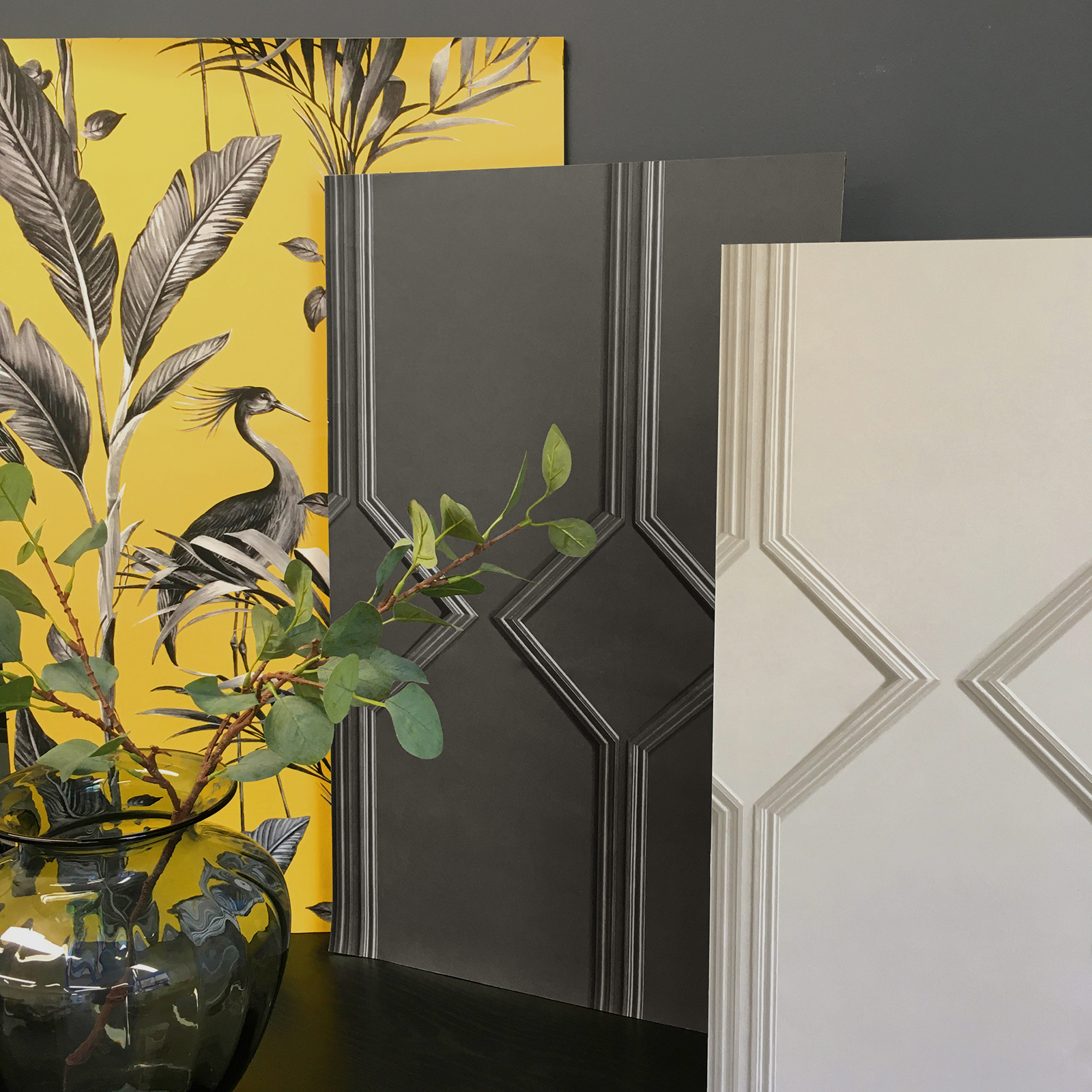 Striking 3D effect wallpaper from Belgravia Decor’s Azzurra collection. Mimicking beautifully aged Georgian style wood panelling. Perfect for adding that touch of sophistication and depth to your room.
