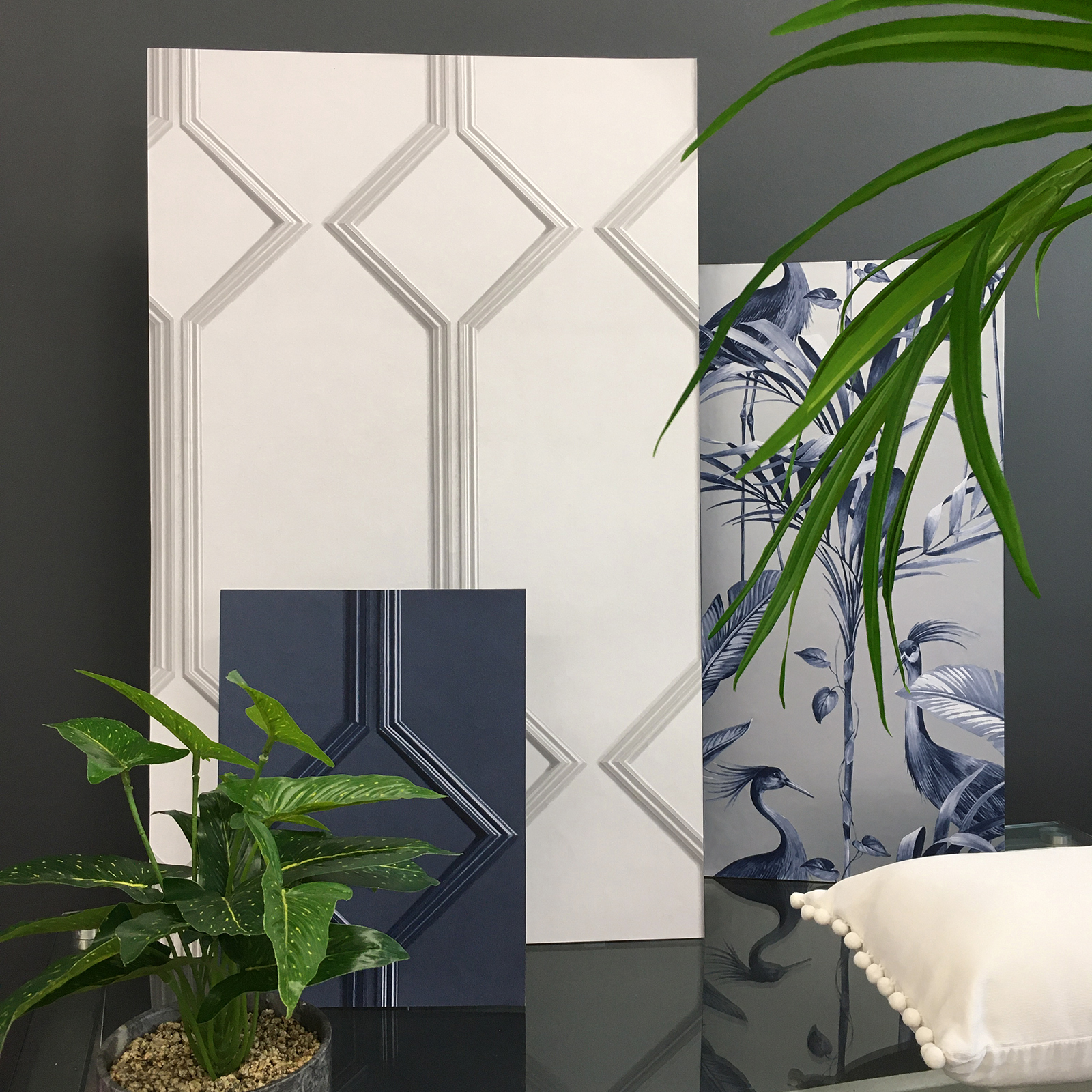 Striking 3D effect wallpaper from Belgravia Decor’s Azzurra collection. Mimicking beautifully aged Georgian style wood panelling. Perfect for adding that touch of sophistication and depth to your room.