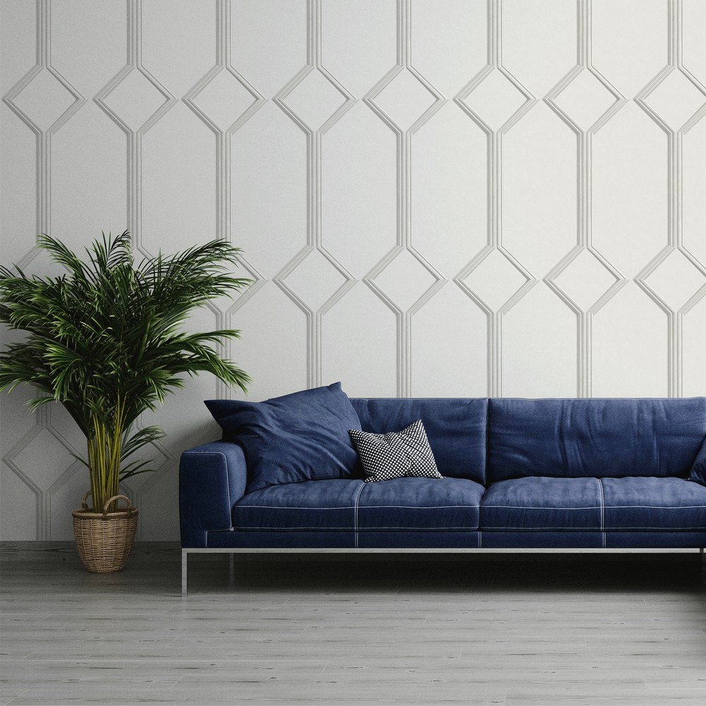 Striking 3D effect wallpaper from Belgravia Decor’s Azzurra collection. Mimicking beautifully aged Georgian style wood panelling. Perfect for adding that touch of sophistication and depth to your room.