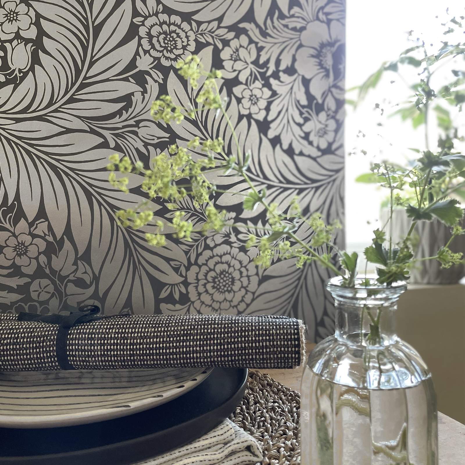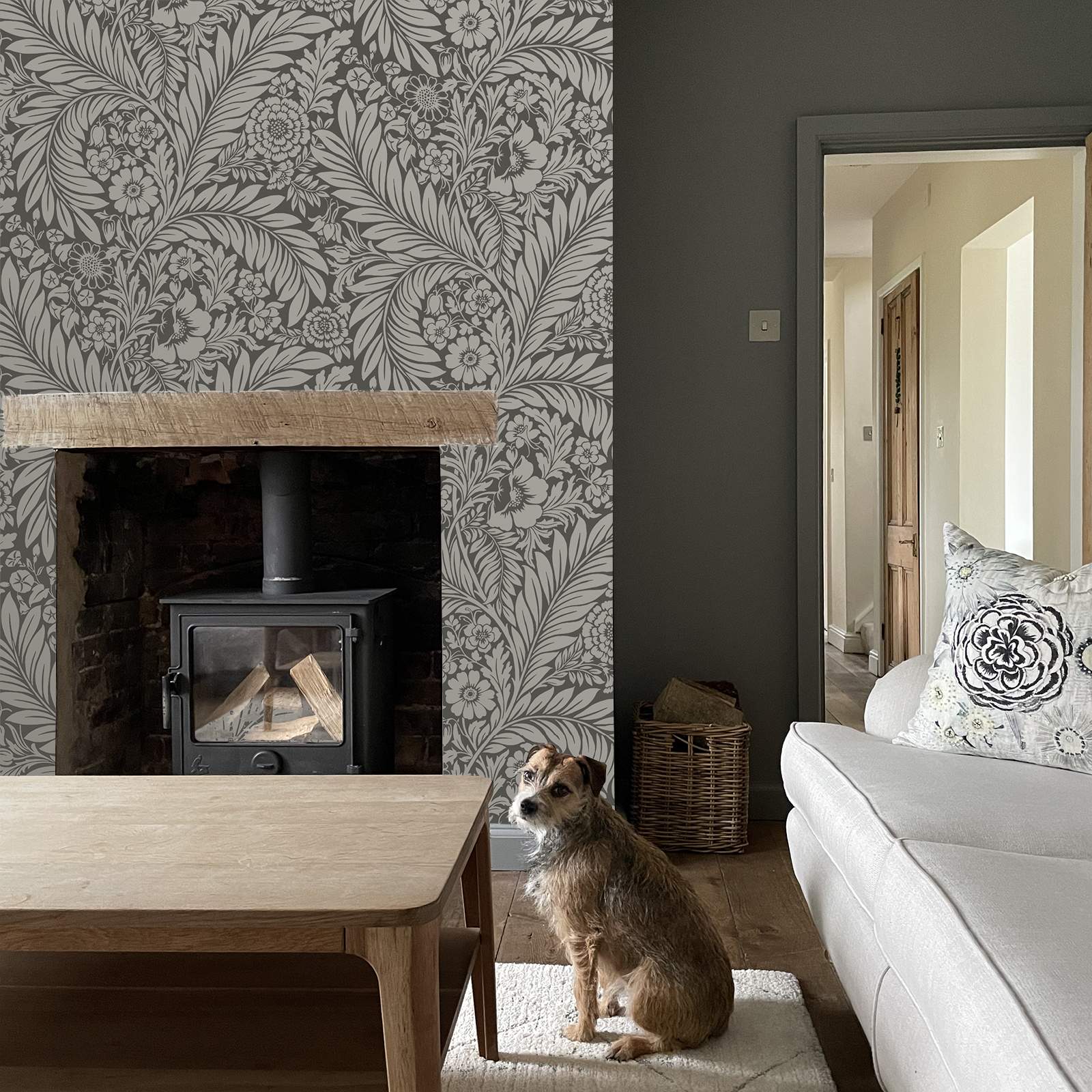 Belgravia Florence Charcoal Grey Floral Leaf Wallpaper 724