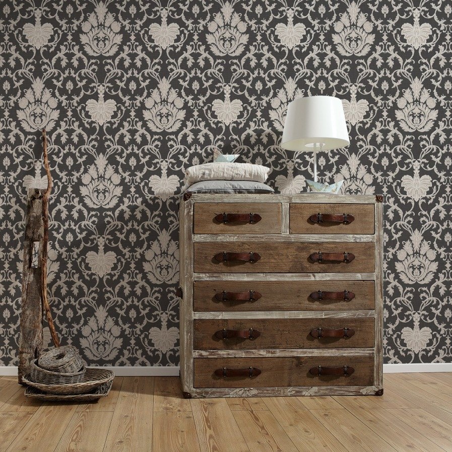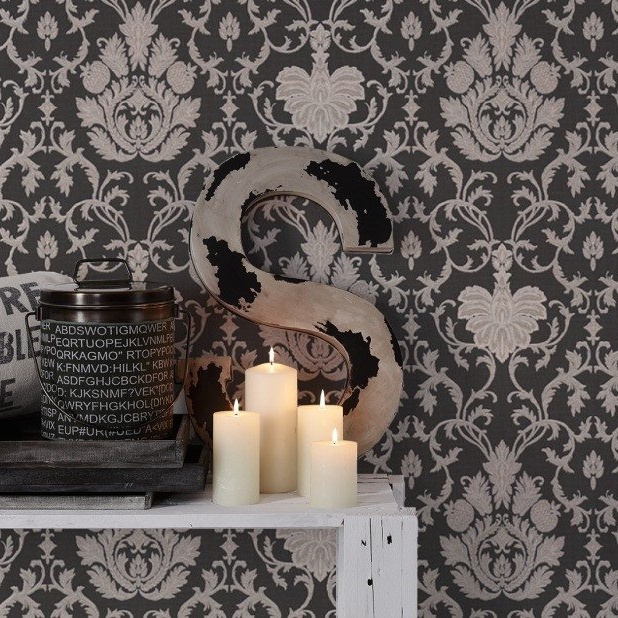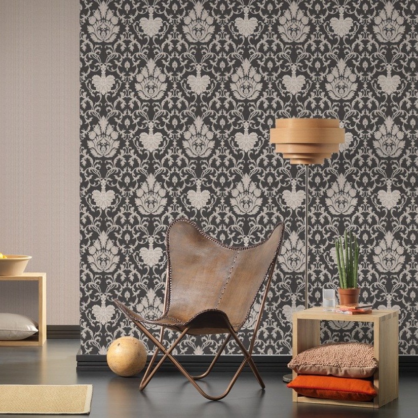 Belle Baroque Glitter Oriental Damask Black & Cream Wallpaper 3390-58