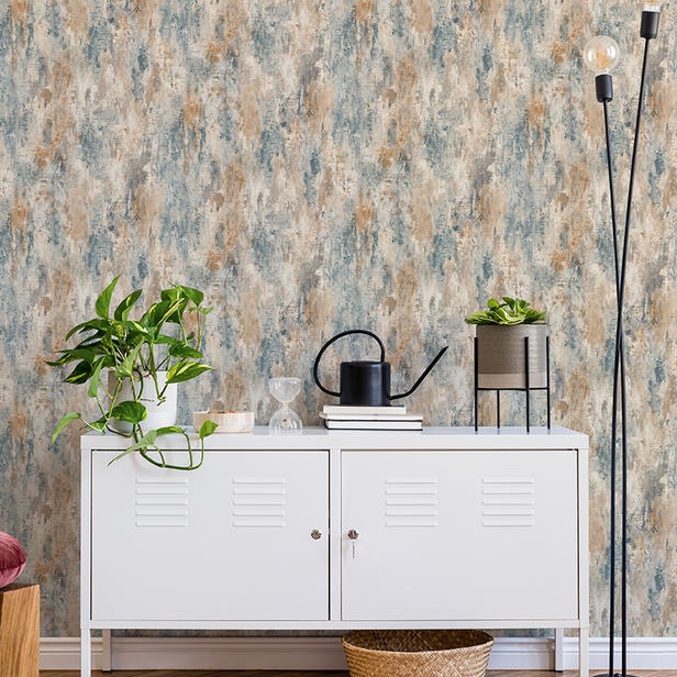 The Bosa Plain wallpaper boasts a painted distressed wall effect with mica highlights. This beautiful emboss lends a plaster-like finish to your wall.