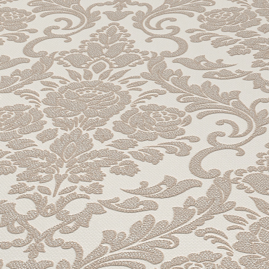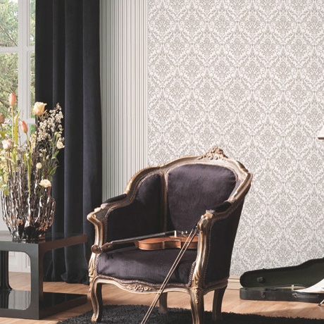 Exquisite, stylish and elegant. This Bremen inspired wallpaper features a classical damask themed print. Held together on a sheen effect background, with elements of glitter sprinkled above print. Please purchase a sample for true colour and texture.