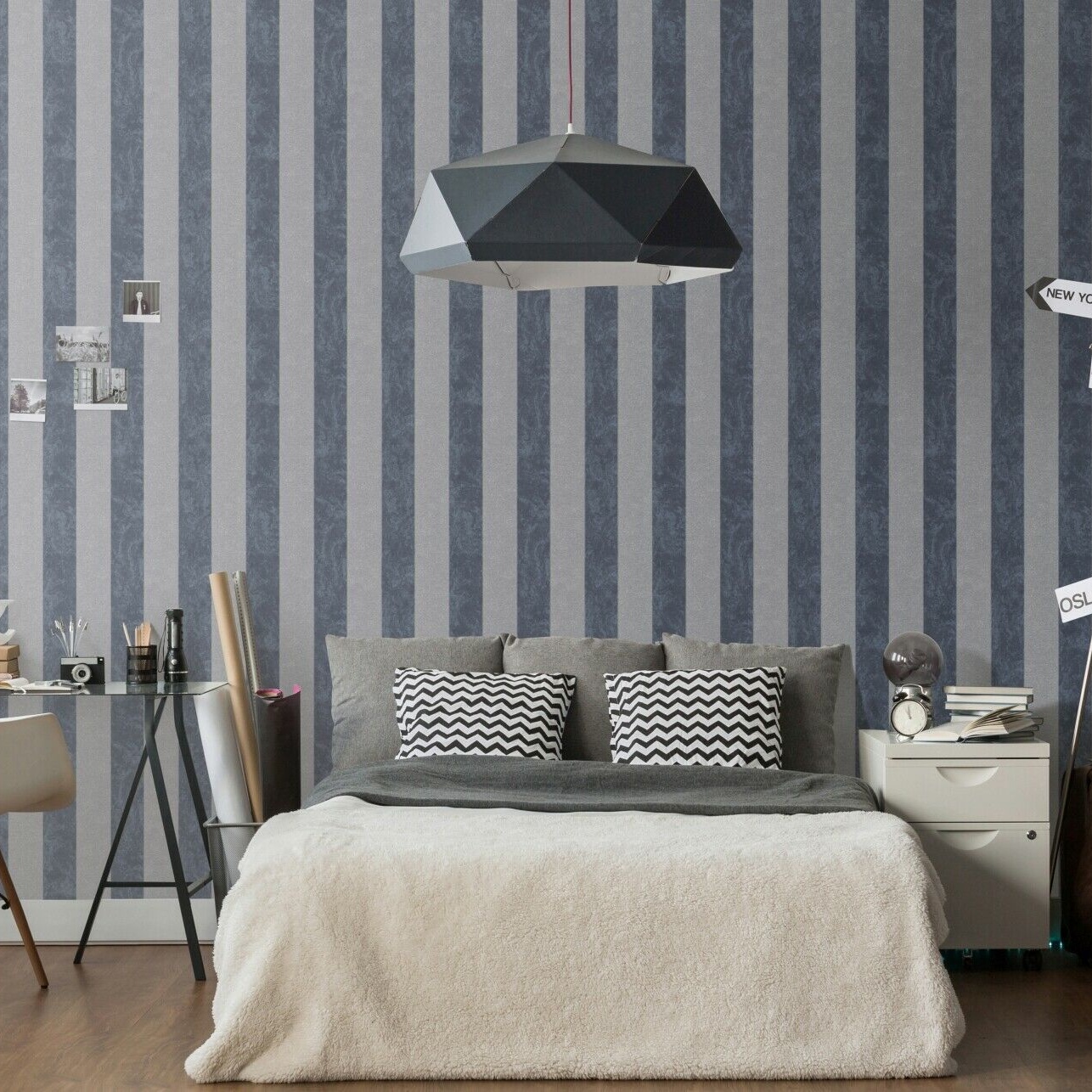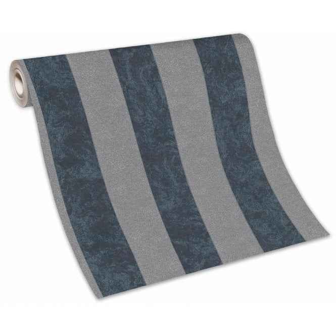 Carat Striped Navy/Black & Silver Beige Vinyl Wallpaper 10077-37