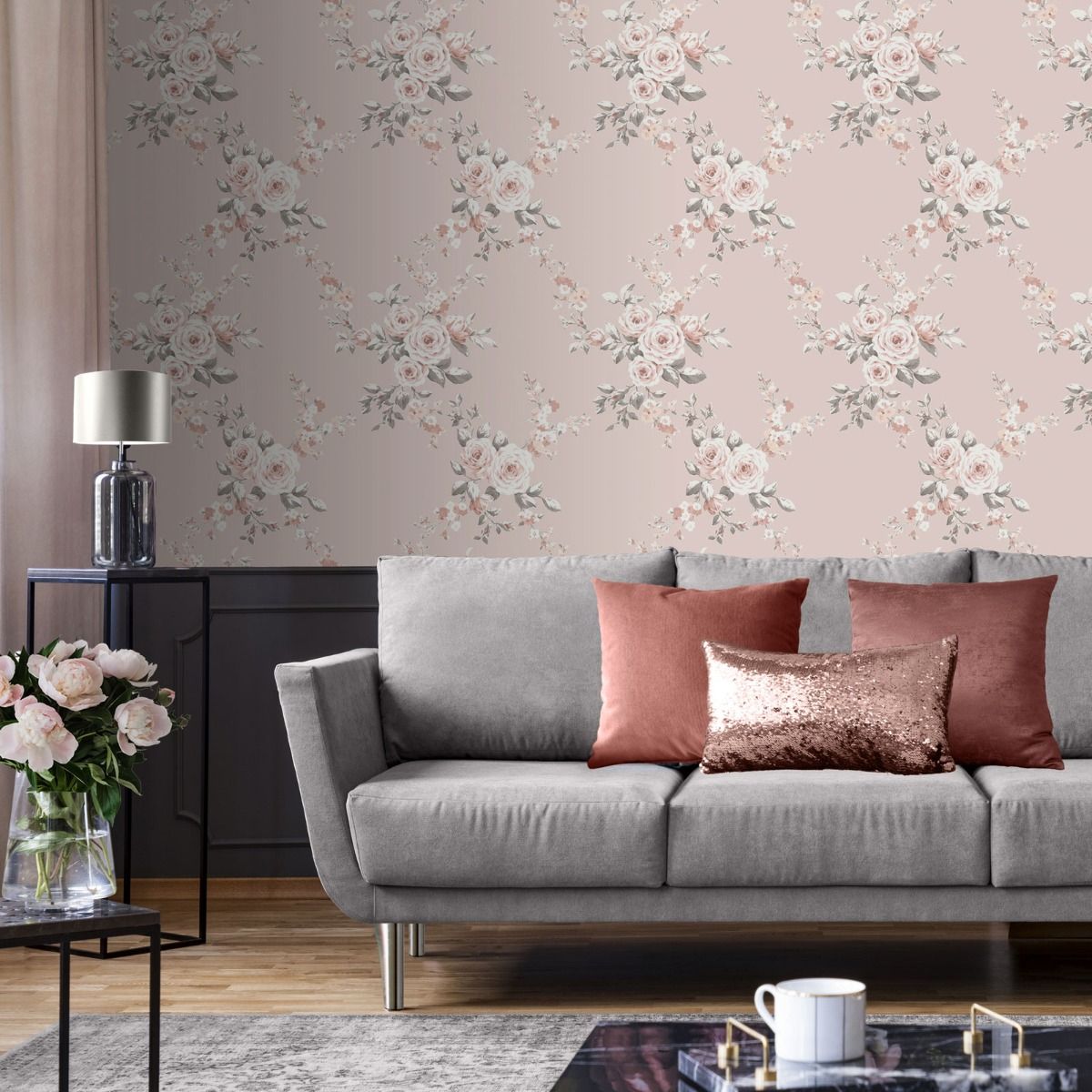 Calculate QuantityBringing a contemporary twist to one of the most popular collections by Catherine Lansfield. The Canterbury Floral features a perfectly placed floral to create that fabulous fantastic statement piece. Beautiful colours enhance the painterly floral design. A beautiful grey and pink floral design uplifted with bold and vibrant colours that would look amazing in your home. This is set on a pale blush pink background with a smooth matte finish. Easy to apply, this quality wallpaper will look great when used to decorate a whole room or even a feature wall.
