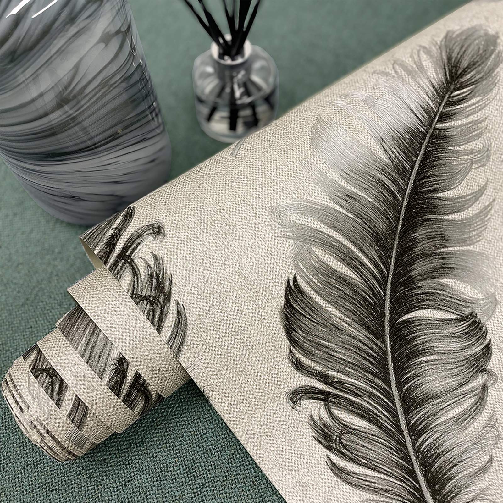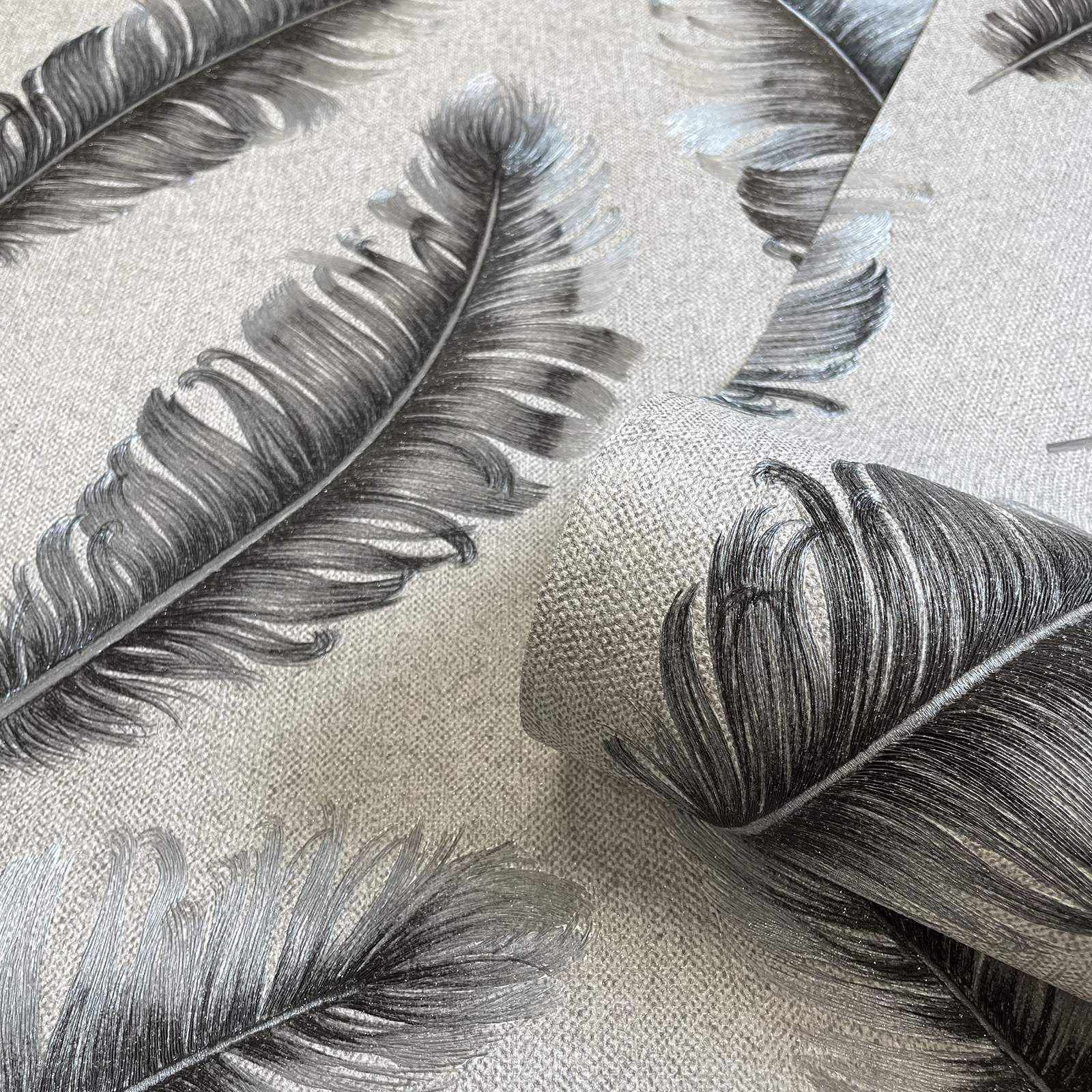 Calculate QuantityCiara feather luxury Italian wallcovering. Taken from the Ciara Collection. The light reflects so beautifully within the large singular feather motif detail…and it sits on a gorgeous fabric textured background. It’s super easy to hang, durable and scrubbable so even ideal for high traffic areas! Coordinate plain textures are available to.