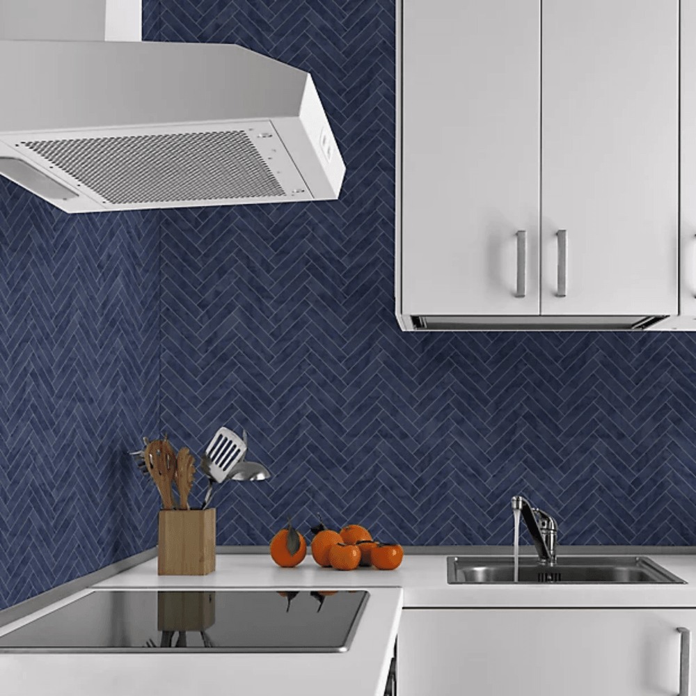 Contour Marble Chevron Blue Kitchen & Bathroom Wallpaper 112645