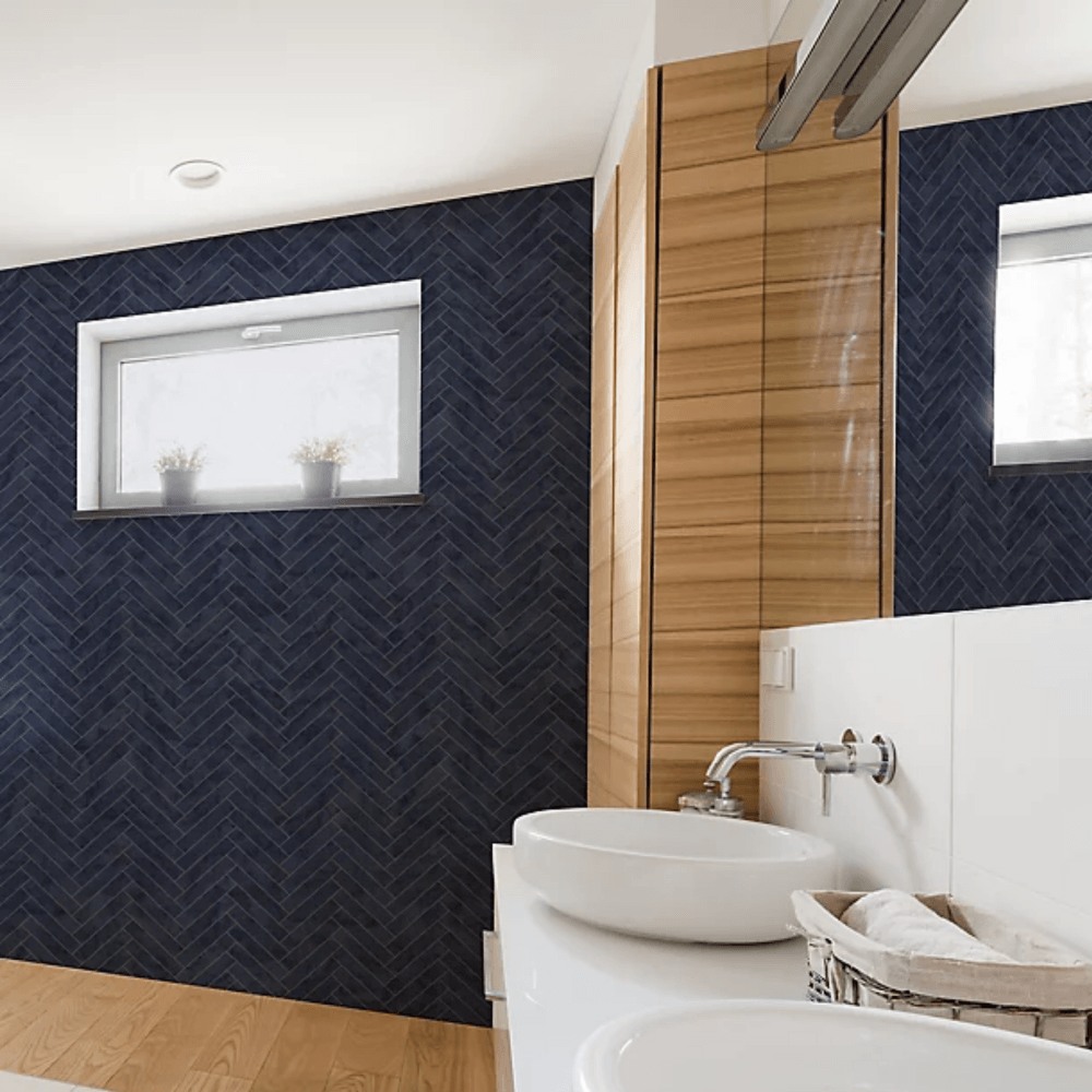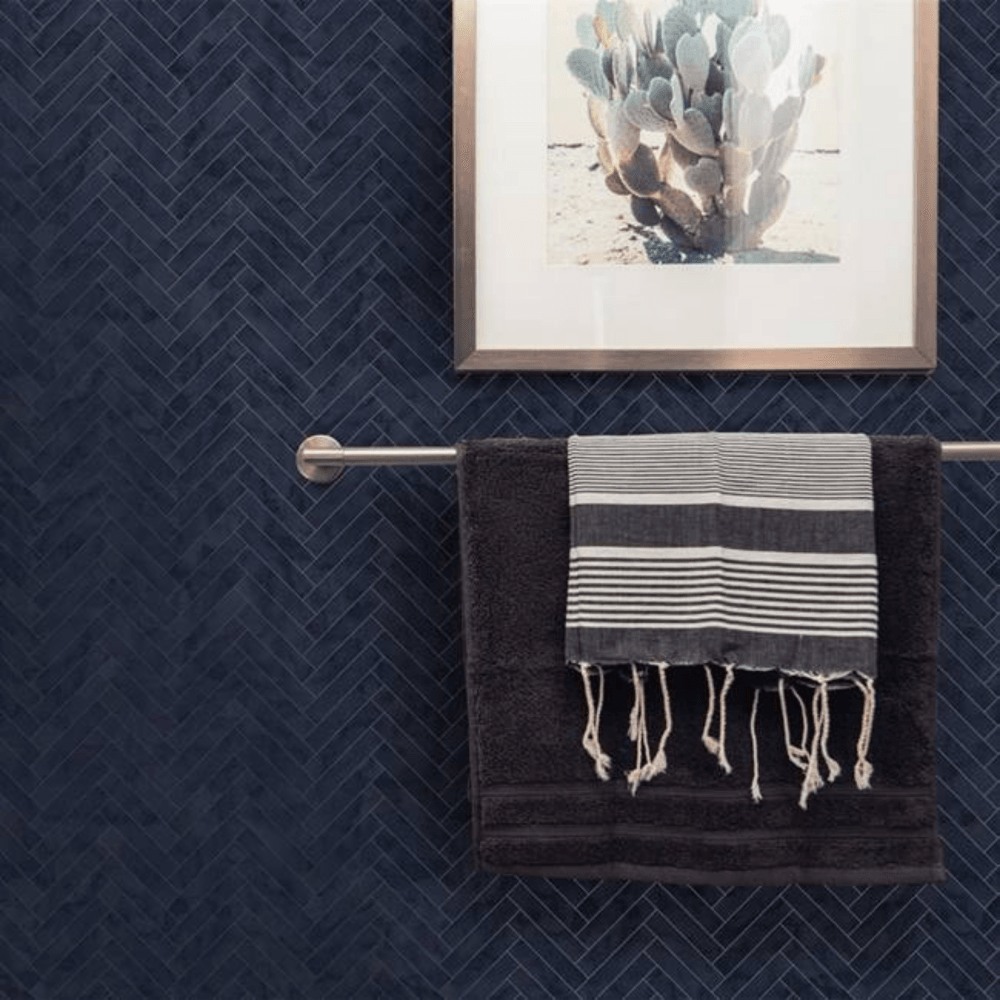 Calculate QuantityHeavy weight anti-bacterial contour wallpaper from Graham & Brown's Oasis Kitchen & Bathroom Collection. This chevron tile effect design here in navy is certain to add copious amounts of sophistication to your home. Revolutionary anti-bacterial properties, is great for reducing bacteria around the home as well as being durable enough to handle everyday kitchen and bathroom activities. Ideal for use in kitchen’s & bathrooms.