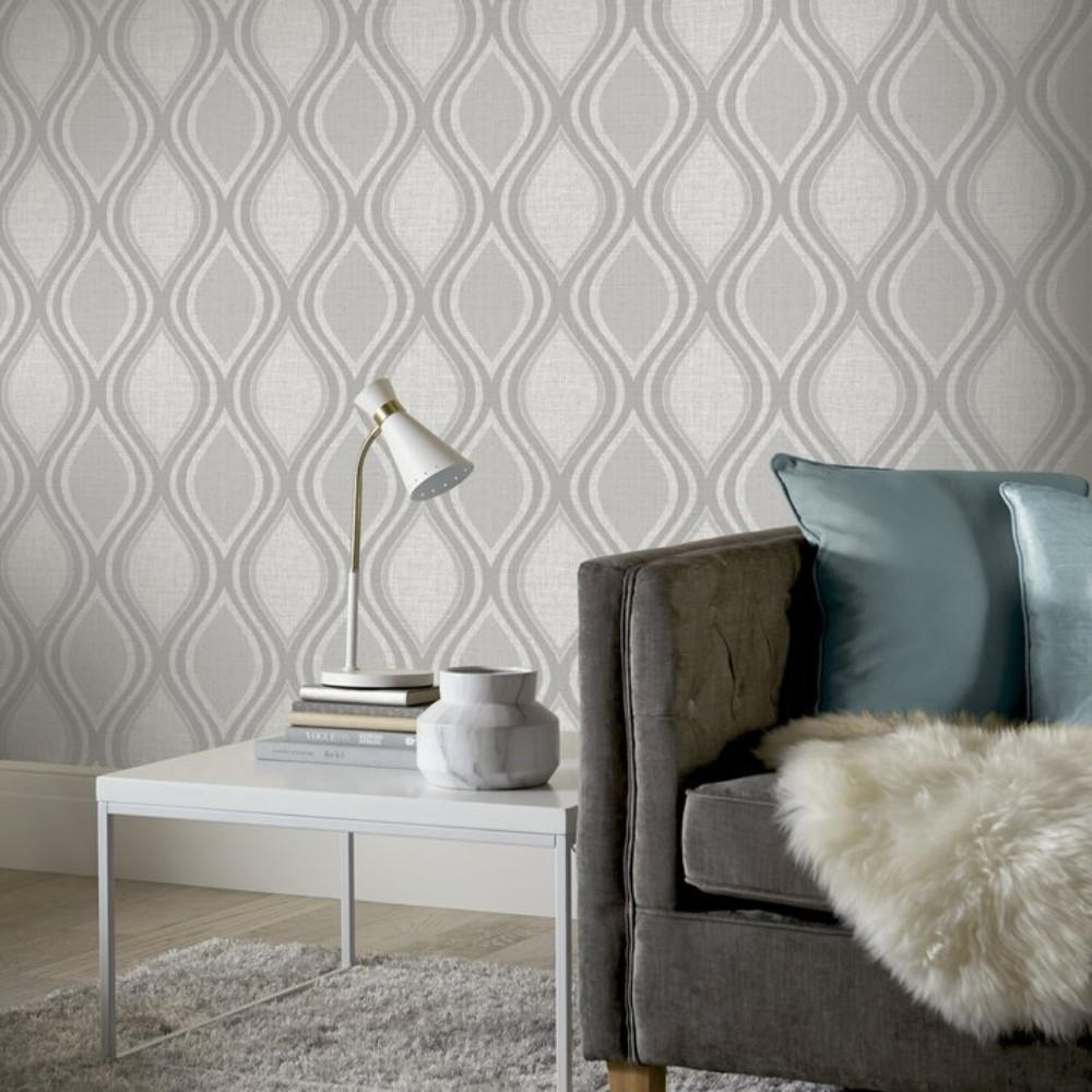 Calculate QuantityIntroducing our new Curve in Grey, featuring a trio of greys including soft silver and ivory, finished with a high luxe metallic shimmer. A teardrop curve design entwines and overlaps from ceiling to floor to create a luxurious backdrop for any room in the home. Choose as a feature wall or paper the whole area for extra luxe. The Curve Collection is part of our heavy weight vinyl range which is ideal for high traffic areas entranceways as it features a heavy-duty textured finish. So be sure to create a lasting first impression and place this beautiful design in your hallway. When you are ready for a freshen up, the strippable design means you can easily peel the paper away.