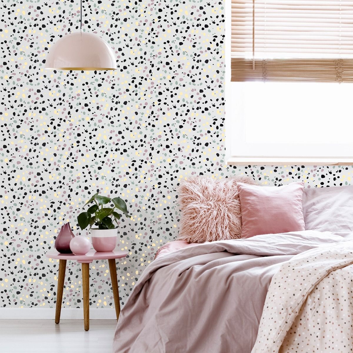 Calculate Quantitya modern take on wallpaper with Dalmatian influences. Everyone is swooning over this hot new animal print for the walls, and with its colourful pattern, it's sure to liven up your space. a straightforward style that will definitely spark conversation when guests arrive at your house. It would look good as a feature wall or all over a children's room, study, corridor, or even the master bedroom.