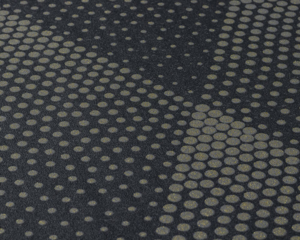 A beautiful all-over pattern with tiny polka dots arranged in a triangle to produce a stunning cascade of glitter. Black & Gold Glitter is the colour scheme used here.