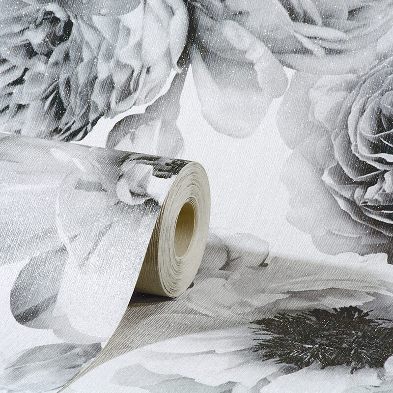 Calculate QuantityThis ultra modern floral wallpaper features big and beautiful painterly blooms in monochrome tones for a look of contemporary chic. Complete with a textured finish and a subtle hint of sparkle all over, it's a paper for the most opulent of interiors. A vinyl wallpaper that's not only tough and hardwearing, it will also cover slight imperfections on your walls, so it's a great option to give a room a great finish, effortlessly. Ideal for halls, living rooms, dining rooms, bathrooms or bedrooms, in contemporary or traditional homes.