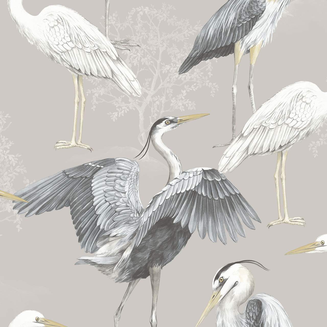 Calculate QuantityHeron Dimension wallpaper from The Design Library's Elegant Homes collection has stylized Herons in various stances as the main focus. The Heron birds, which appear to have been hand painted, are finely detailed with brushstrokes, and they are positioned against a faint tree shape to give the main wallpaper design depth. Heron wallpaper, shown in this example in Greige, is likely to lend an eccentric touch to any room in the house.