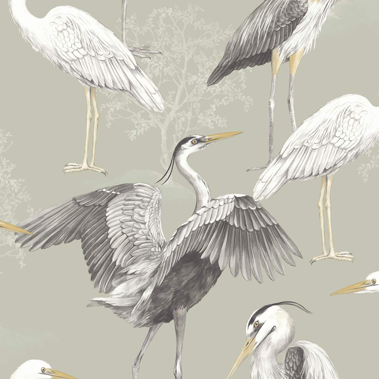 Calculate QuantityHeron Dimension wallpaper from The Design Library's Elegant Homes collection has stylized Herons in various stances as the main focus. The Heron birds, which appear to have been hand painted, are finely detailed with brushstrokes, and they are positioned against a faint tree shape to give the main wallpaper design depth. Heron wallpaper, shown in this example in Sage Green, is likely to lend an eccentric touch to any room in the house.
