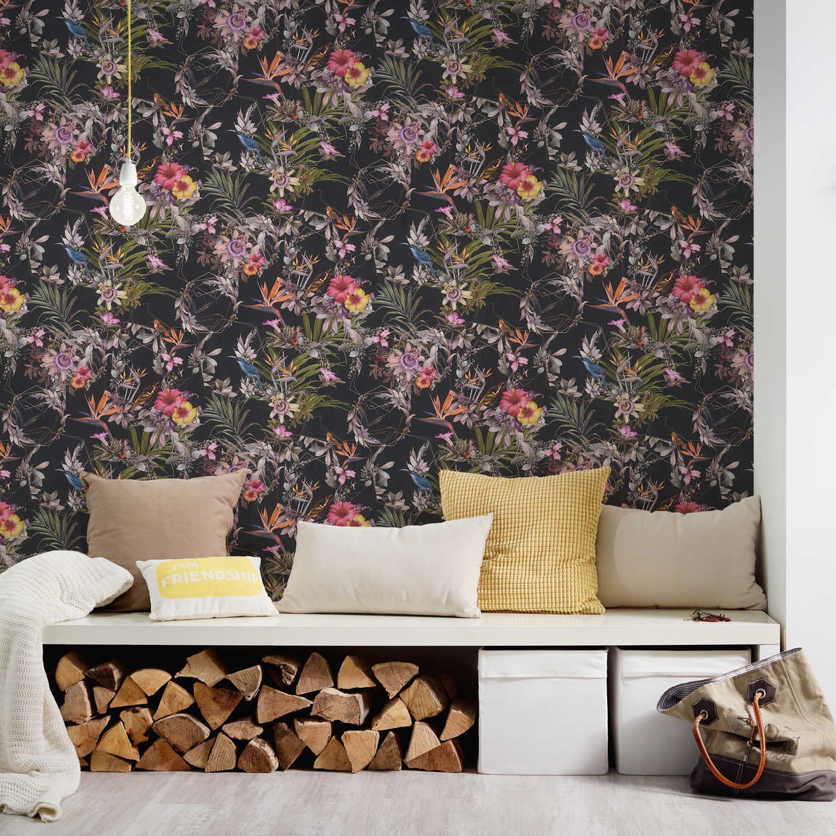 Dream Flowery Digital Print Vinyl Wallpaper Black 38178-1