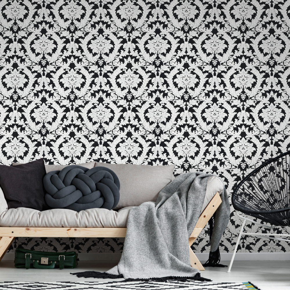 Dresden Damask Black & White Vinyl Wallpaper 10159-15