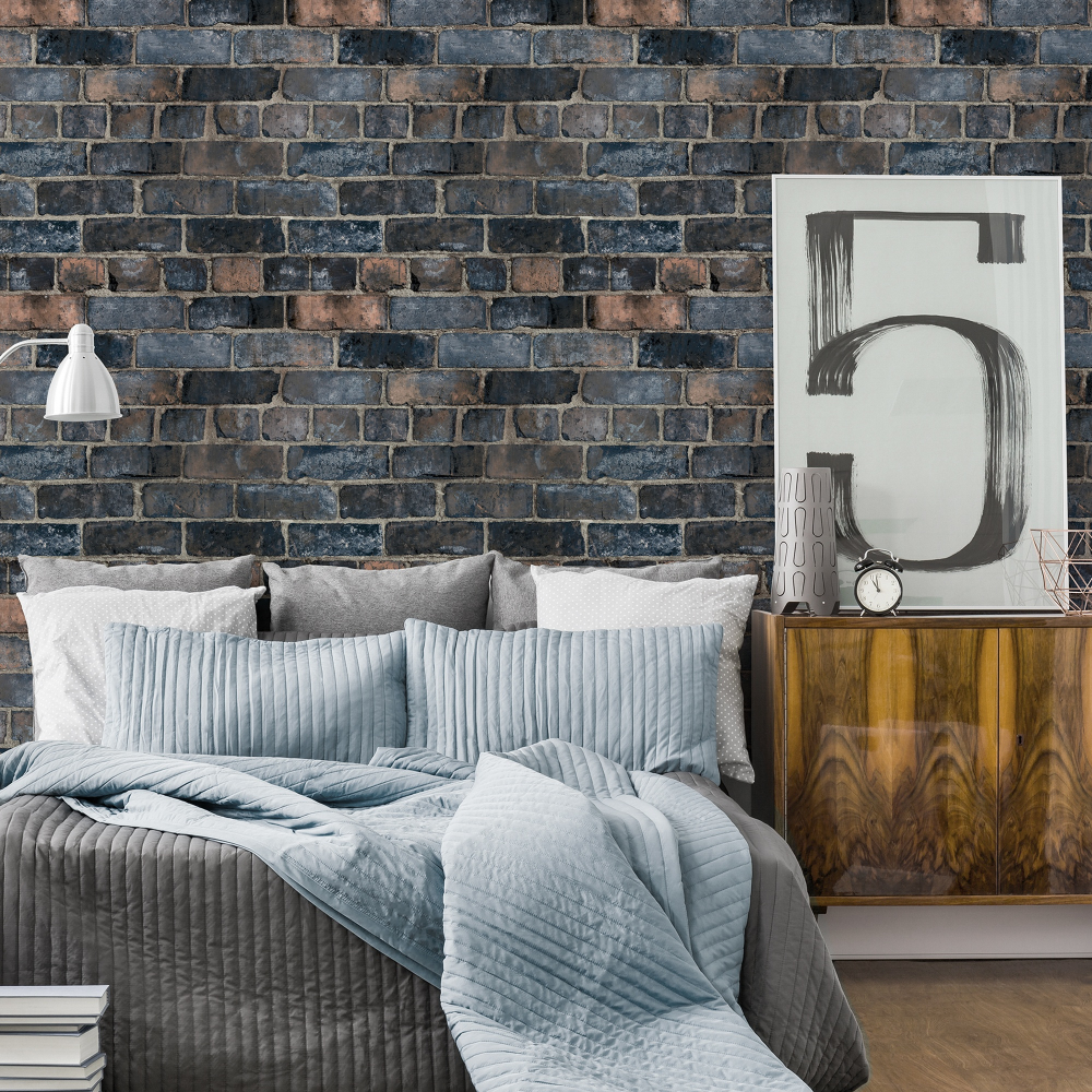 Durham Brick Effect Blue Wallpaper A52402