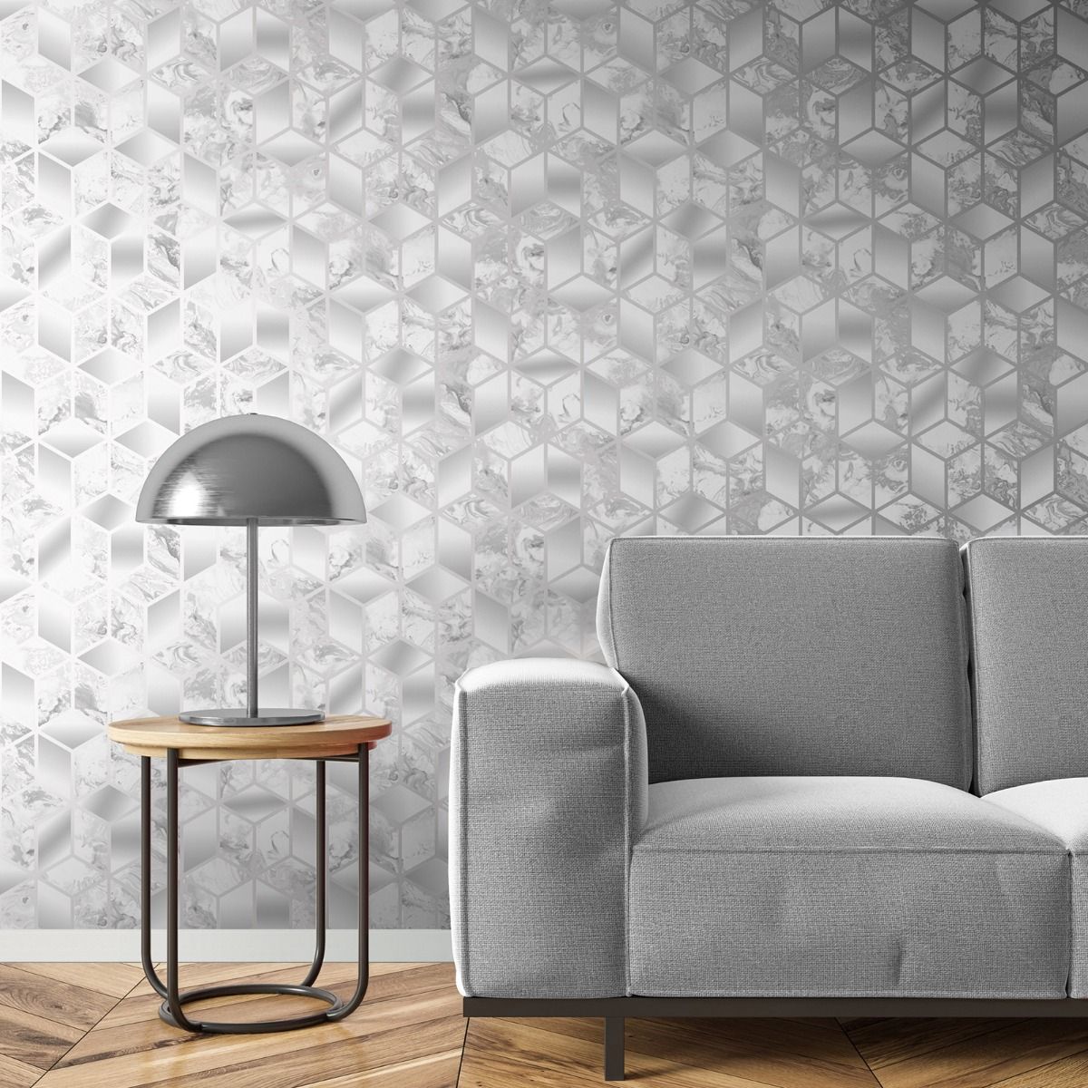Calculate QuantityThis gorgeous marble swirl effect wallpaper combined together with a geometric cuboid contort, is guaranteed to bring about new vibes in your living space. Contrasted together with metallic embellishments, this will look great as the light bounces off the surface. Be sure not to miss out on this new one. Order your sample now!
