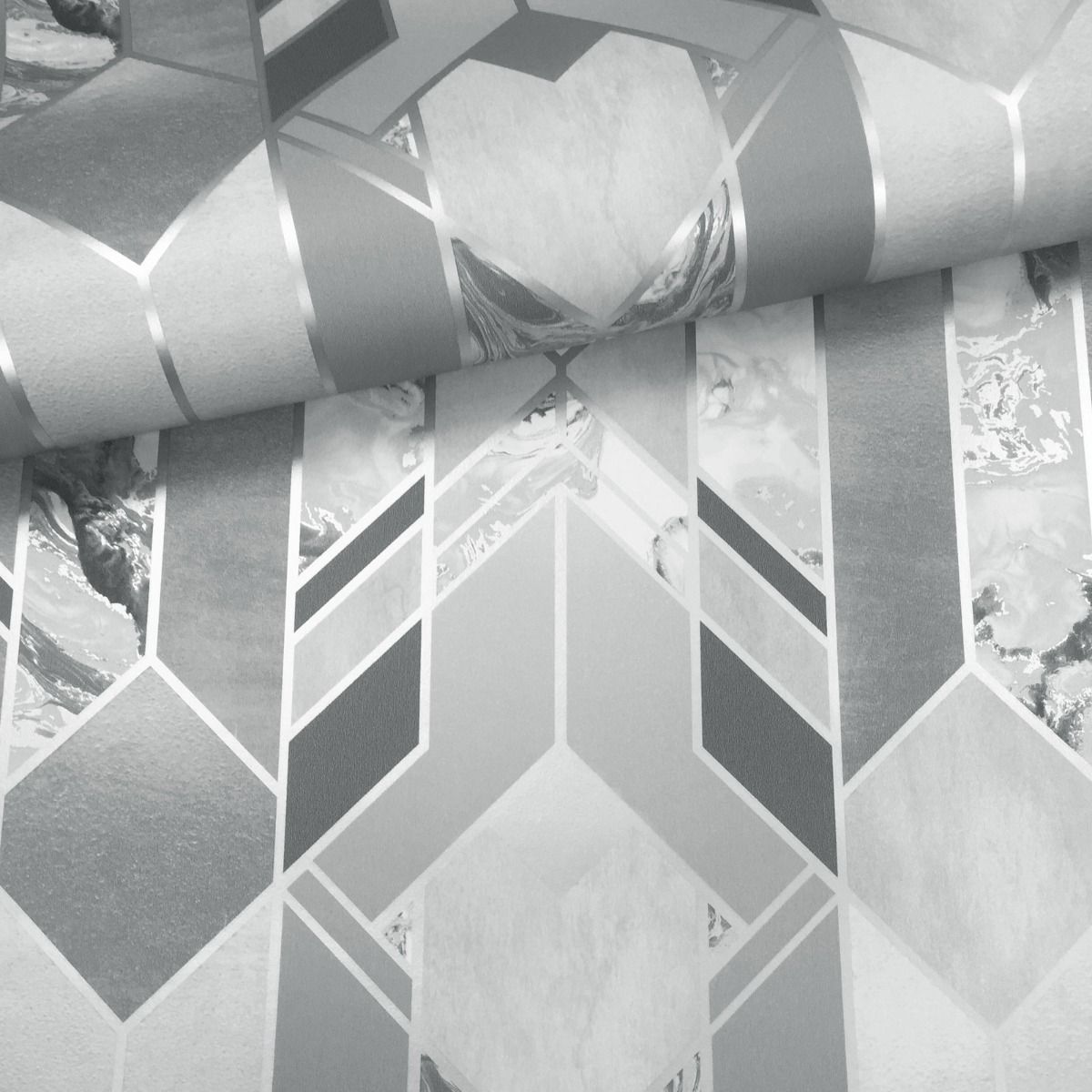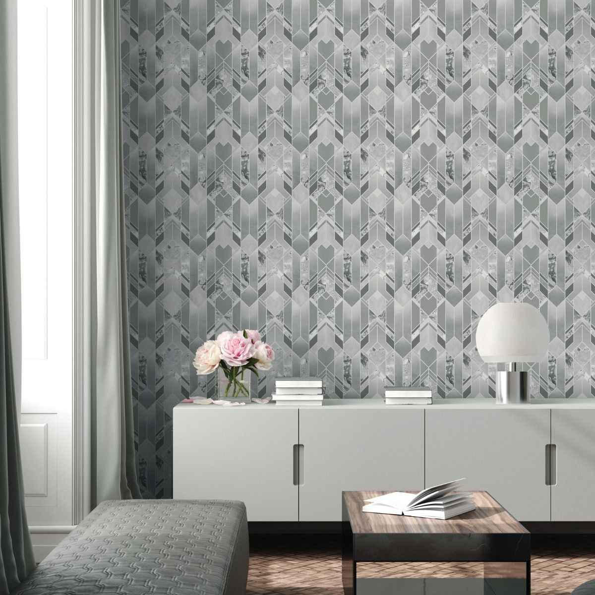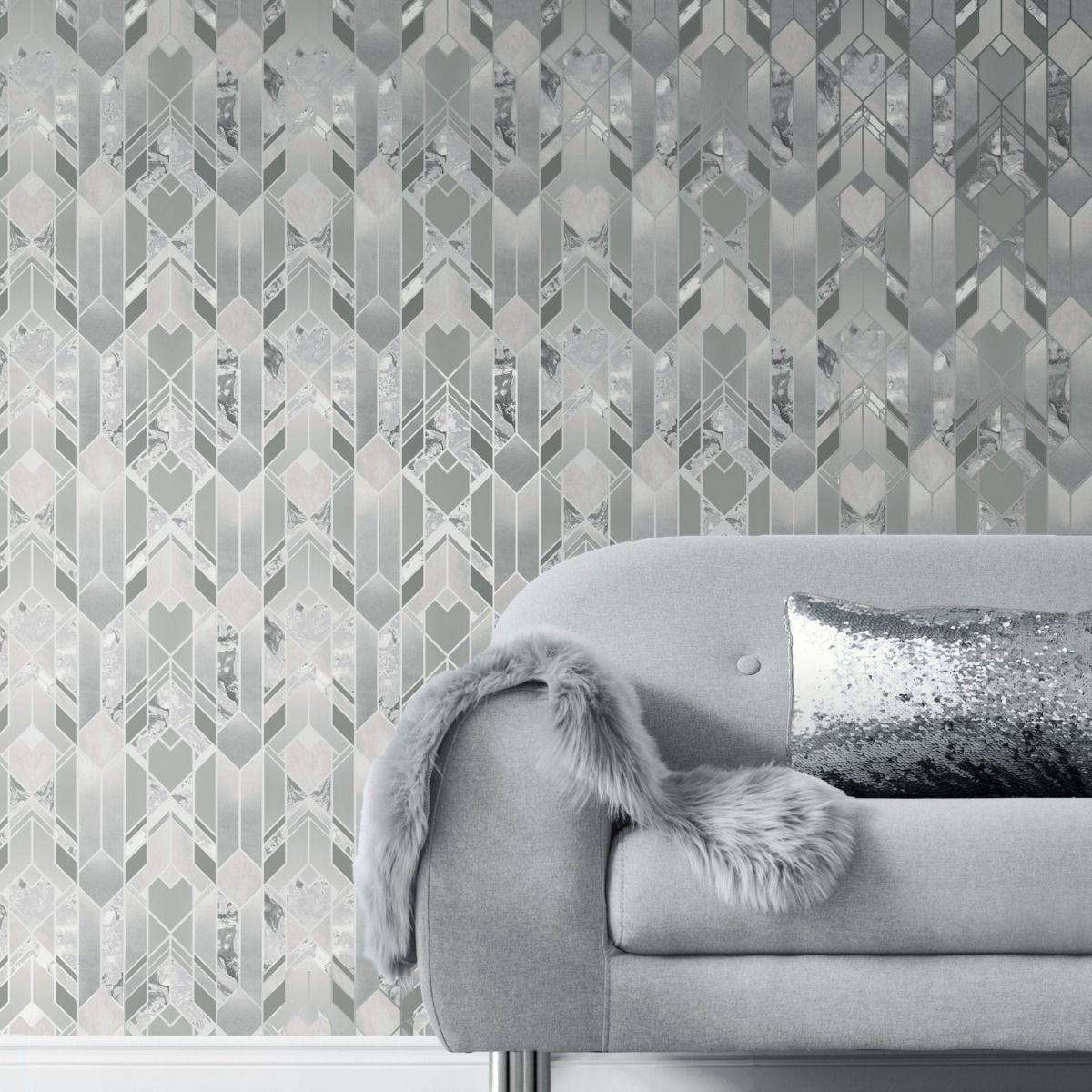 Calculate QuantityBeautiful marble effect wallpaper from Muriva which has a lovely Art Deco inspired geometric theme running throughout. The wallpaper features a slick sheen further enhanced with a sexy metallic fill which really makes it something special. This stunning wallpaper is easy to apply and would look great when used to create a feature wall or even decorate a full room. Please purchase a sample for true colour and texture.