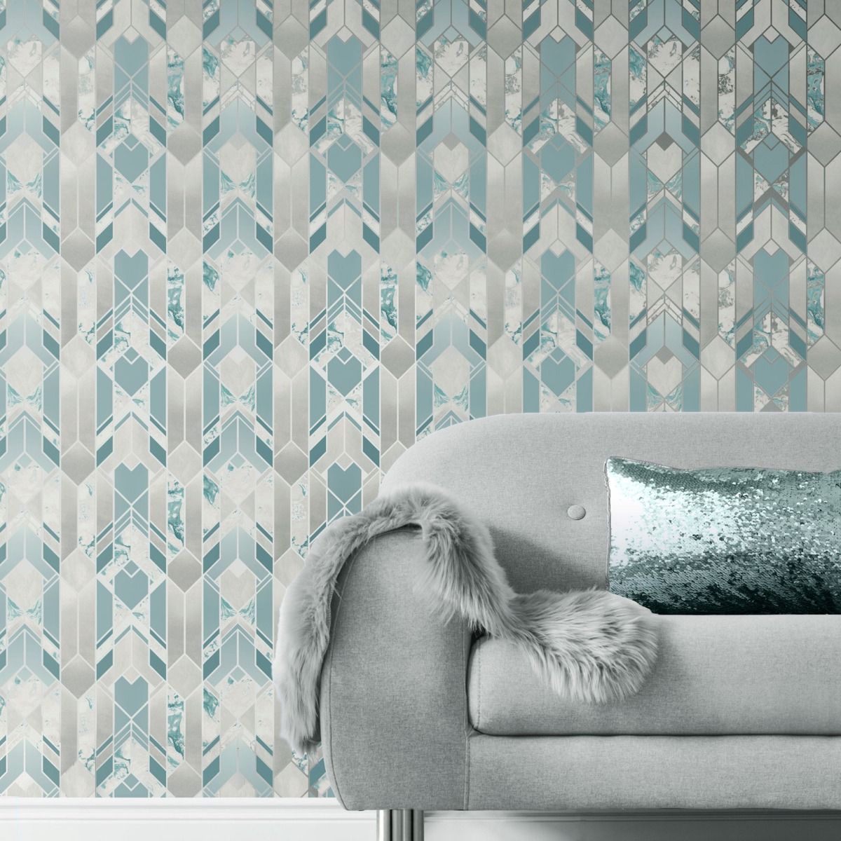 Calculate QuantityBeautiful marble effect wallpaper from Muriva which has a lovely Art Deco inspired geometric theme running throughout. The wallpaper features a slick sheen further enhanced with a sexy metallic fill which really makes it something special. This stunning wallpaper is easy to apply and would look great when used to create a feature wall or even decorate a full room. Please purchase a sample for true colour and texture.