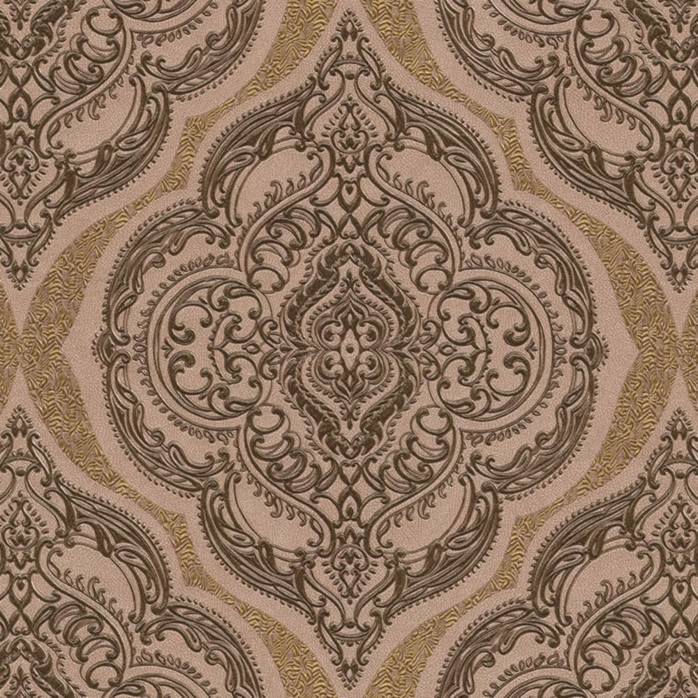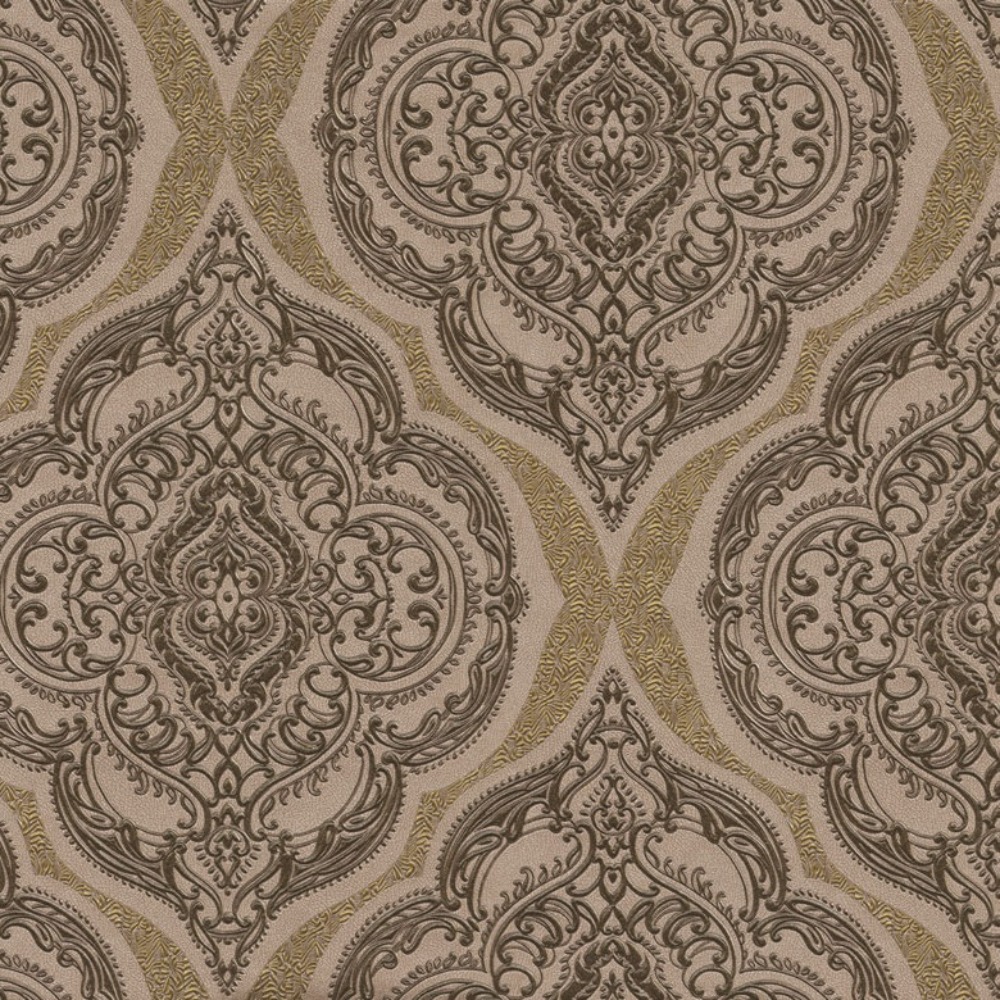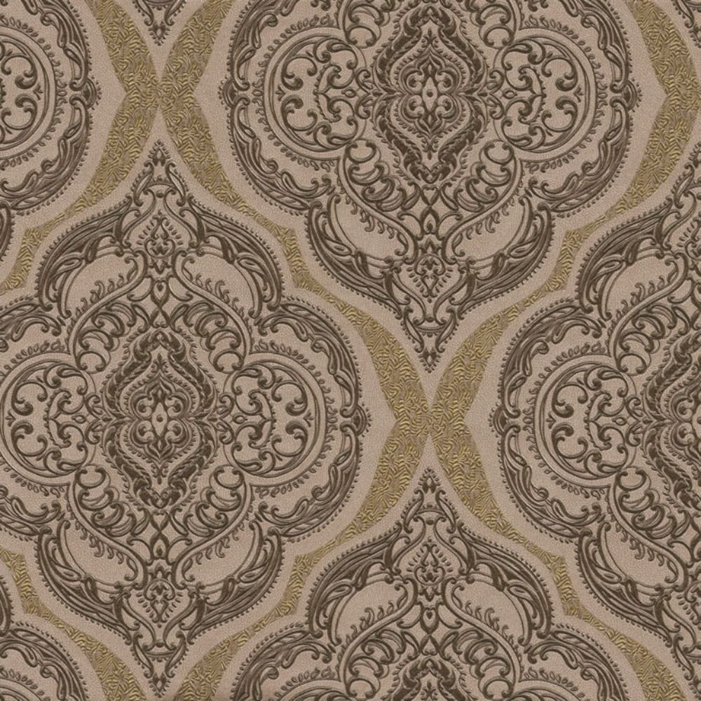 Elixir Luxury Damask Brown Italian Vinyl Wallpaper 1m Width 46603