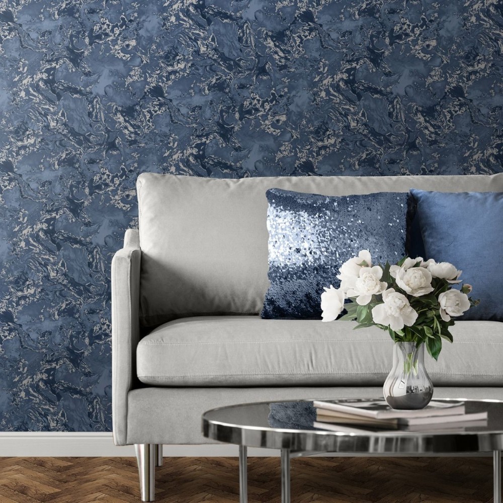Elixir Marble Navy & Silver Wallpaper 166505