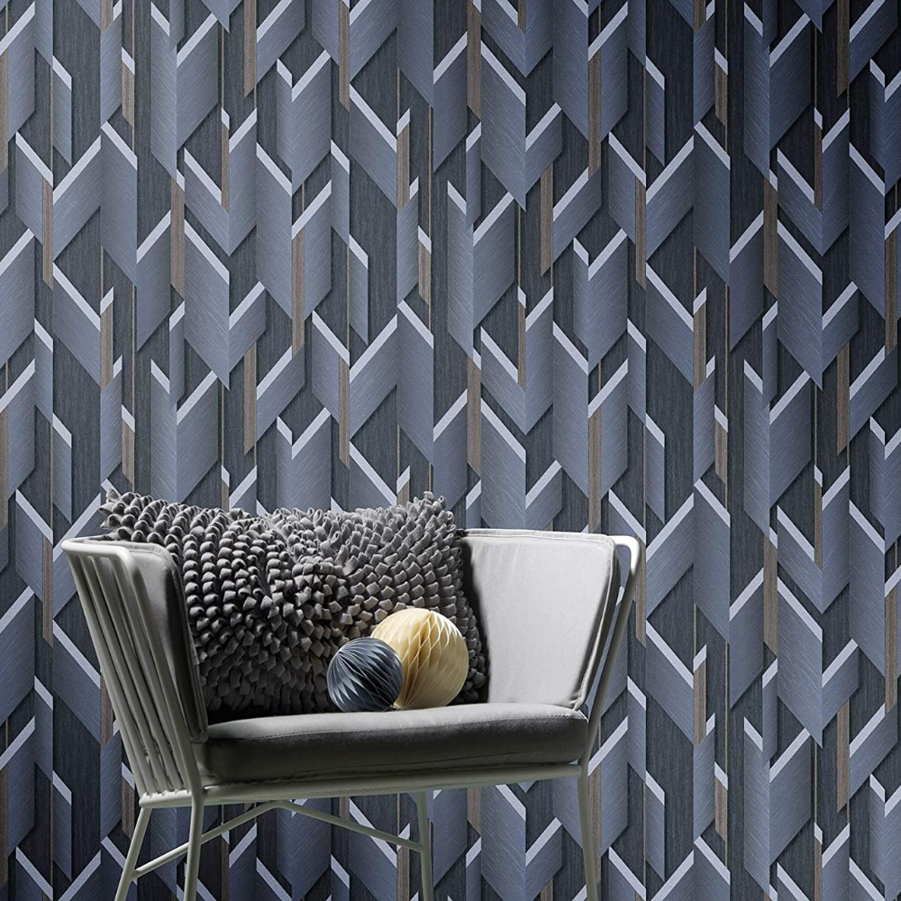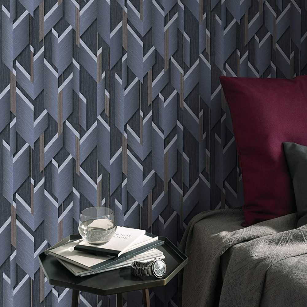 Erismann Guido Maria 3D Geo Navy Blue Vinyl Wallpaper 10145-08