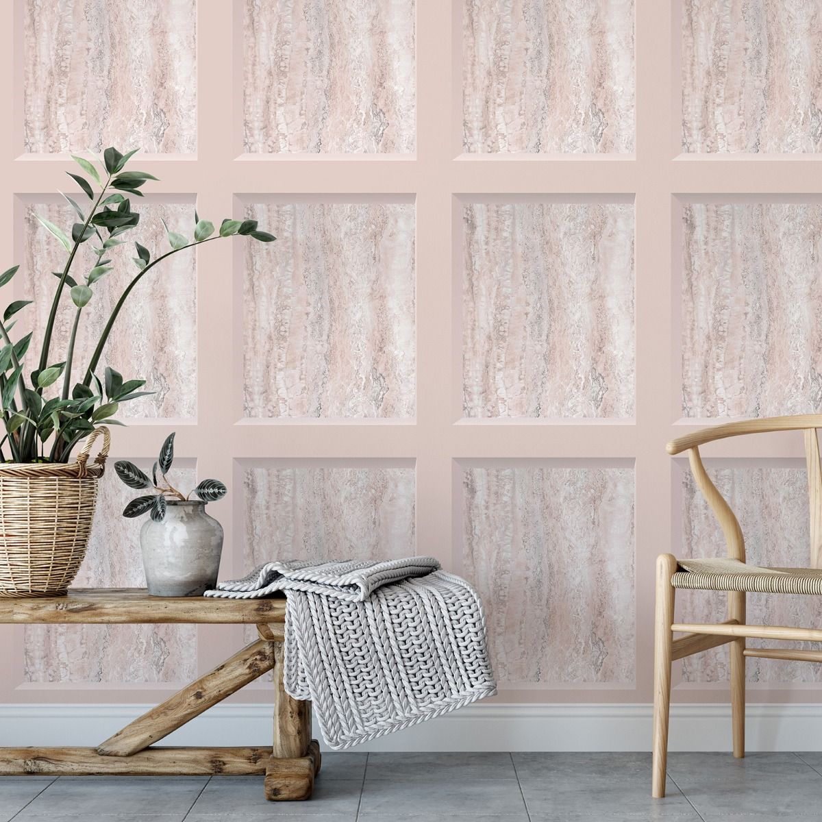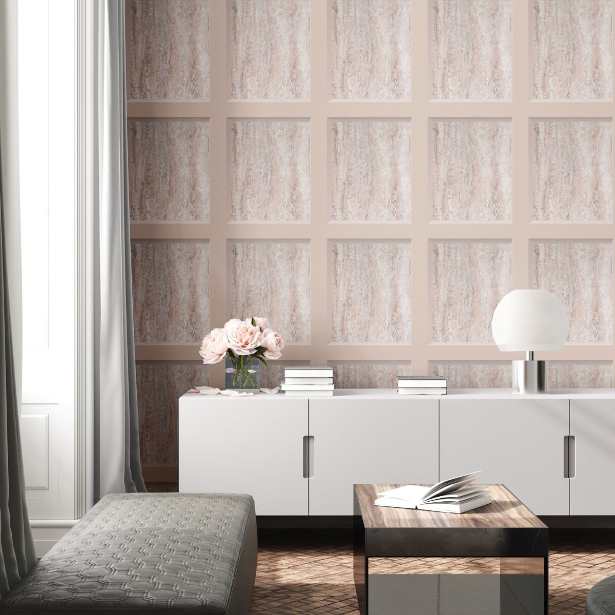 Eterna Marble Panel Blush Wallpaper 186503