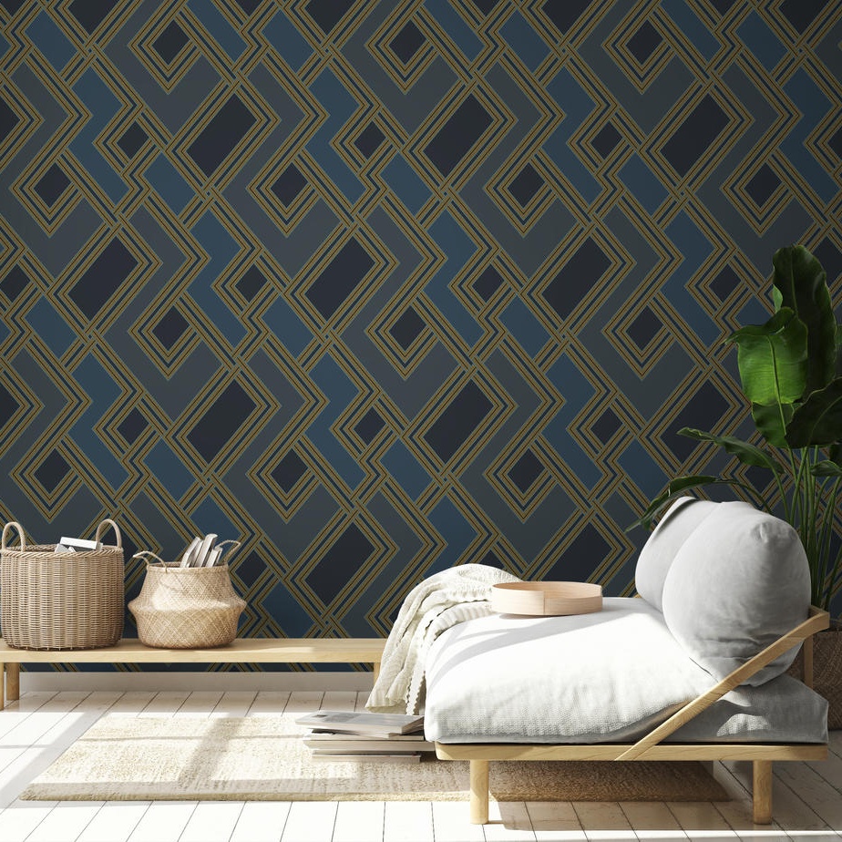 Fabric Geo Blue & Gold Geometric Wallpaper 177502