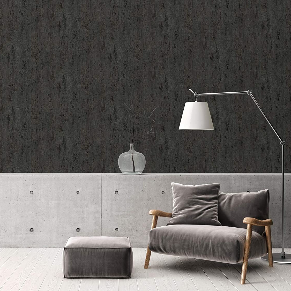 Havana Distressed Industrial Effect Black Vinyl Wallpaper 32651-5