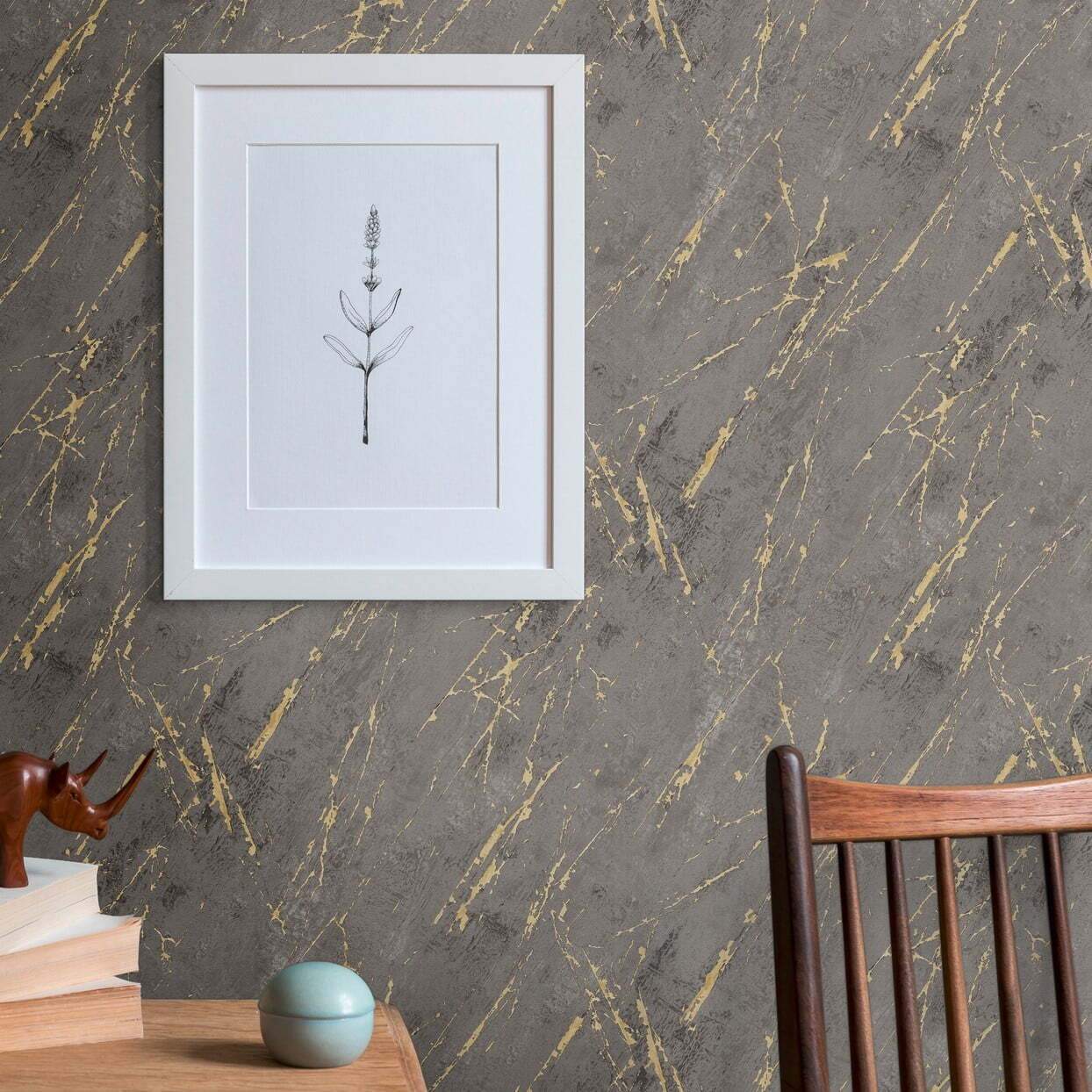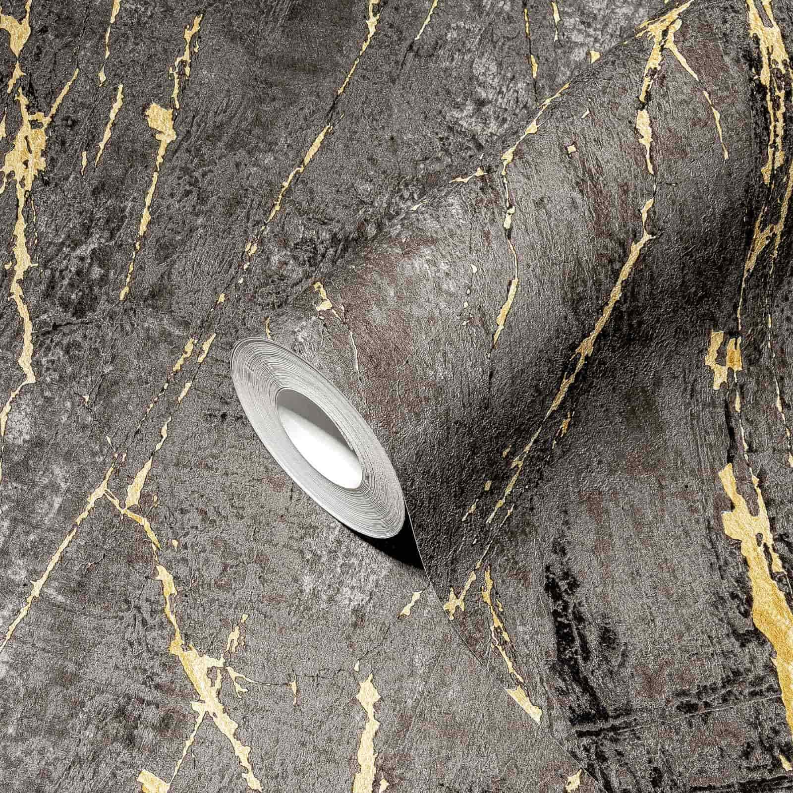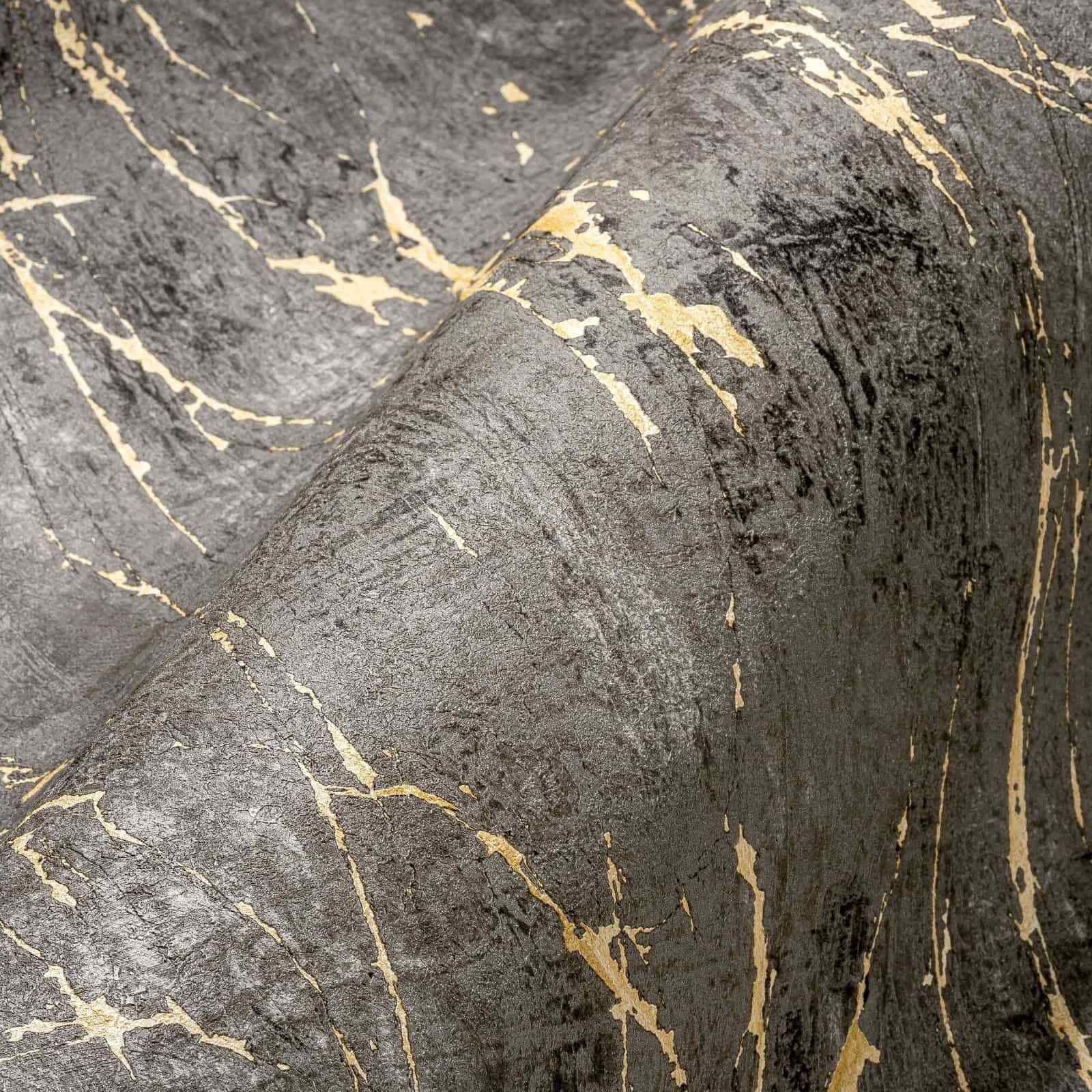 Havana Marble Effect Charcoal & Gold Vinyl Wallpaper 38817-5