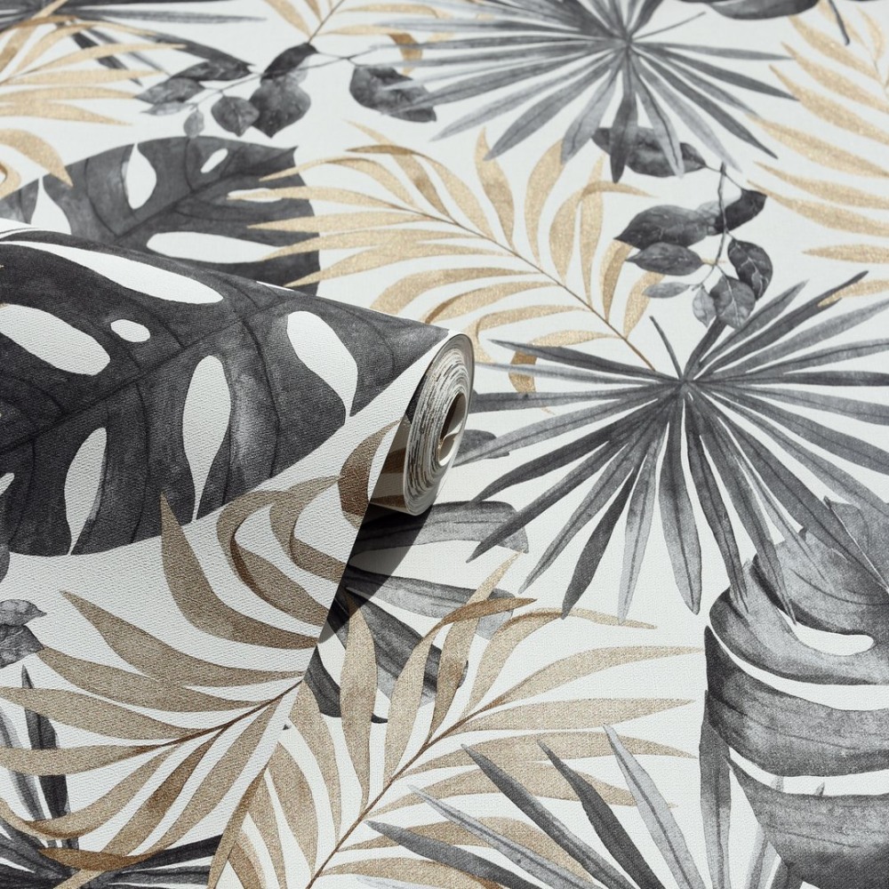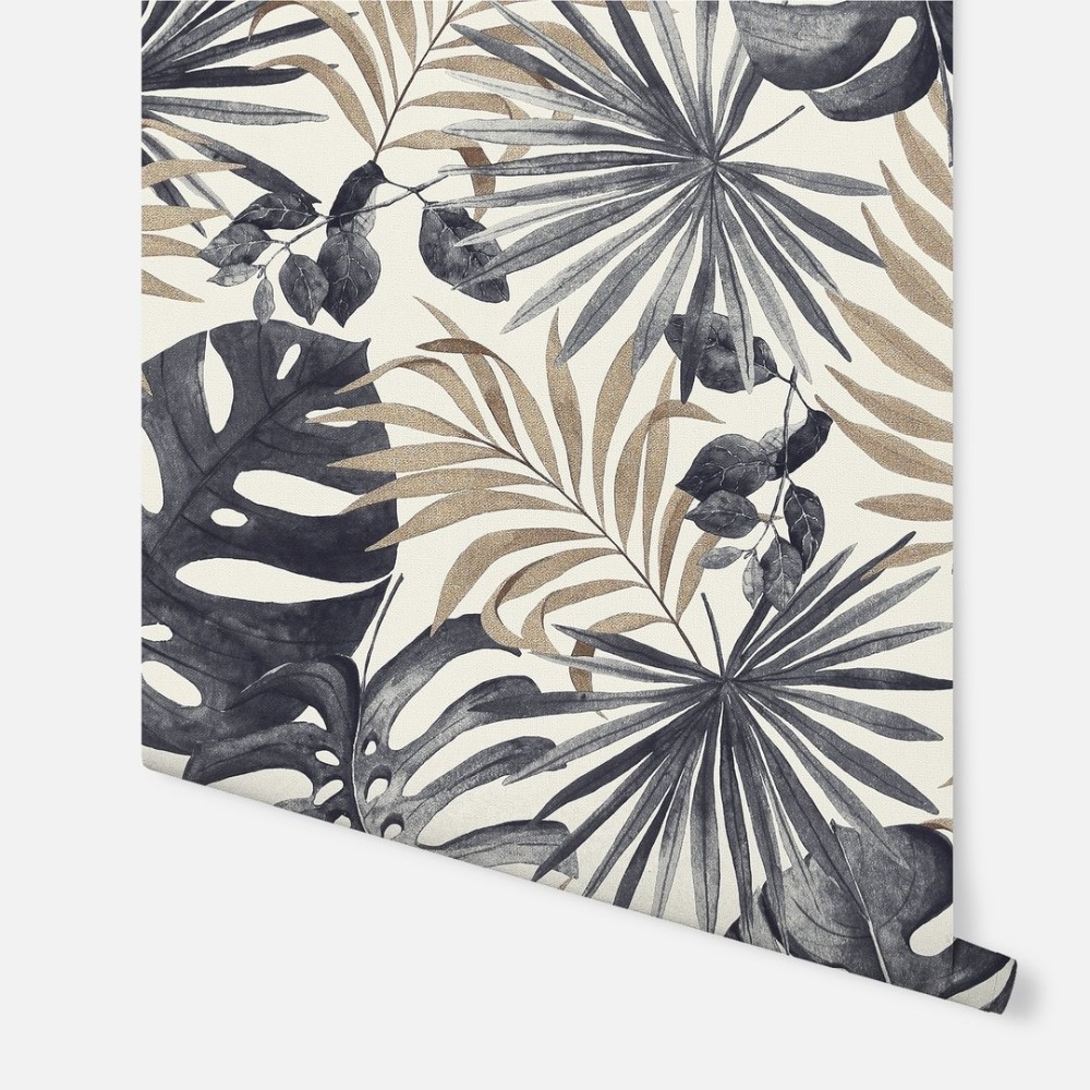 Calculate QuantityA modern must-have, this exotic wallpaper has a cool contemporary feel thanks to its on-trend bold palm print design and gold metallic highlights. Sitting on a neutral background, the charcoal and gold botanic motifs really stand out and bring an indulgent, high-end feel to your home, wherever you hang it. This vinyl wallpaper not only looks great but is practical too and it covers slight imperfections and it's tough and hardwearing which makes it ideal for high traffic areas.