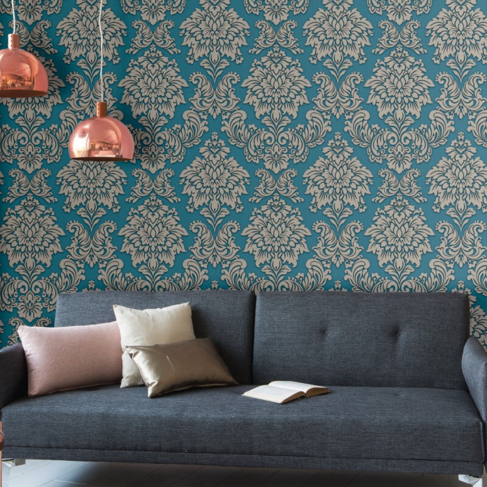 This Lizzy Damask by AS Creation is exquisite, stylish and elegant. This wallpaper features a classical damask themed print, held together on a flat matt background, with a hint of liquid glitter fill. Please purchase a sample for true colour and texture.
