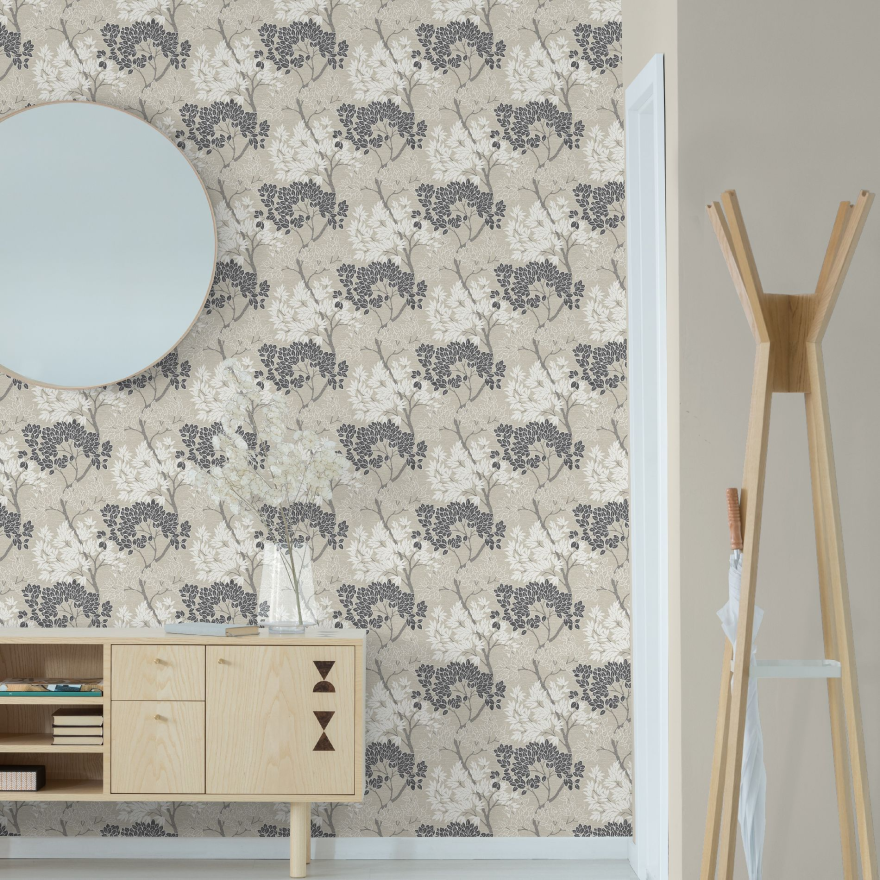 This beautiful tree wallpaper design will add a stylish finish to most rooms in your home. Featuring a Scandinavian inspired classic leafy tree design in a refined and on trend colour of natural, white and black. Please purchase a sample for true colour and texture.