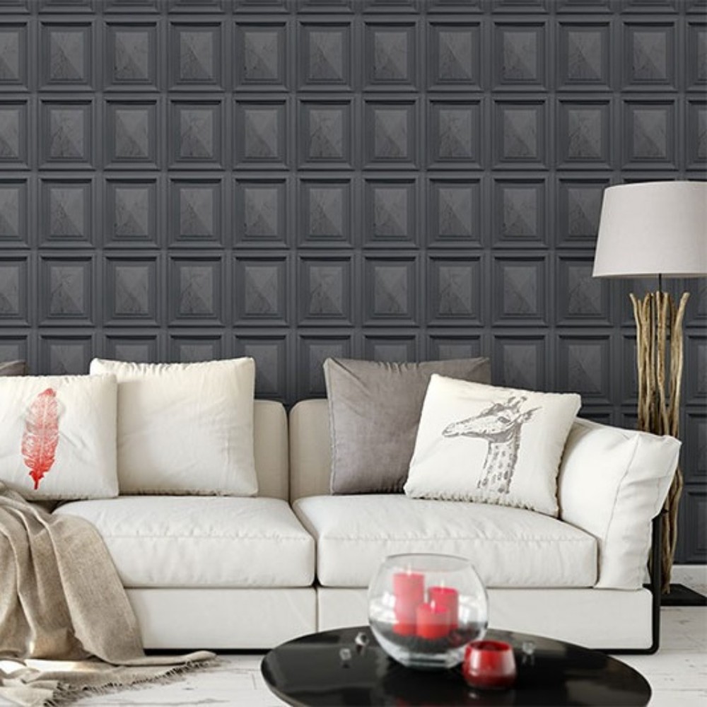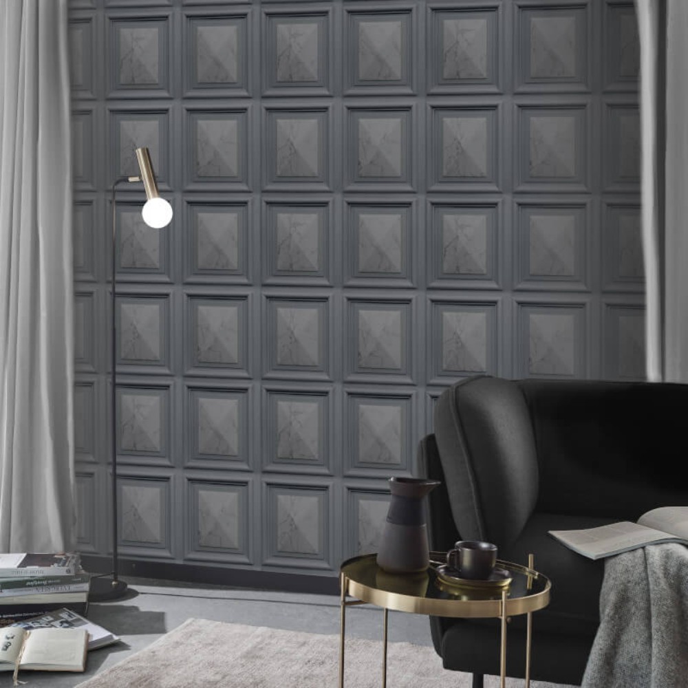 Marble Wood Panel Charcoal Vinyl Wallpaper 6319-47