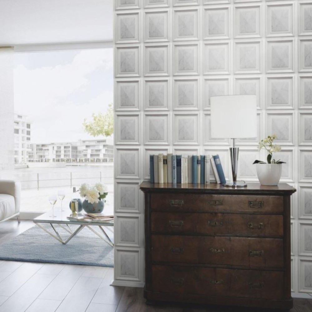Marble Wood Panel Grey Vinyl Wallpaper 6319-10