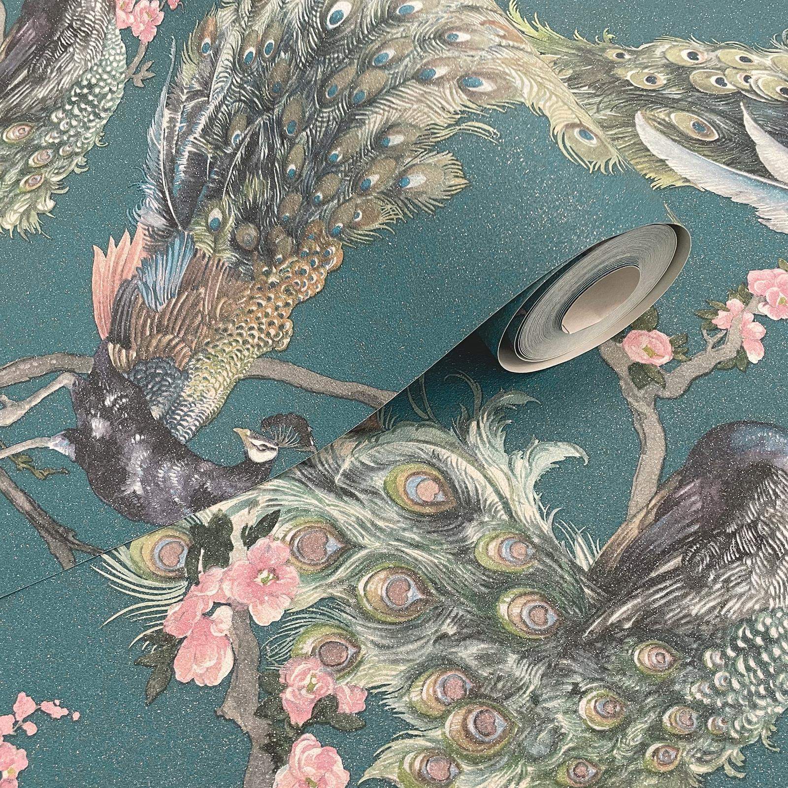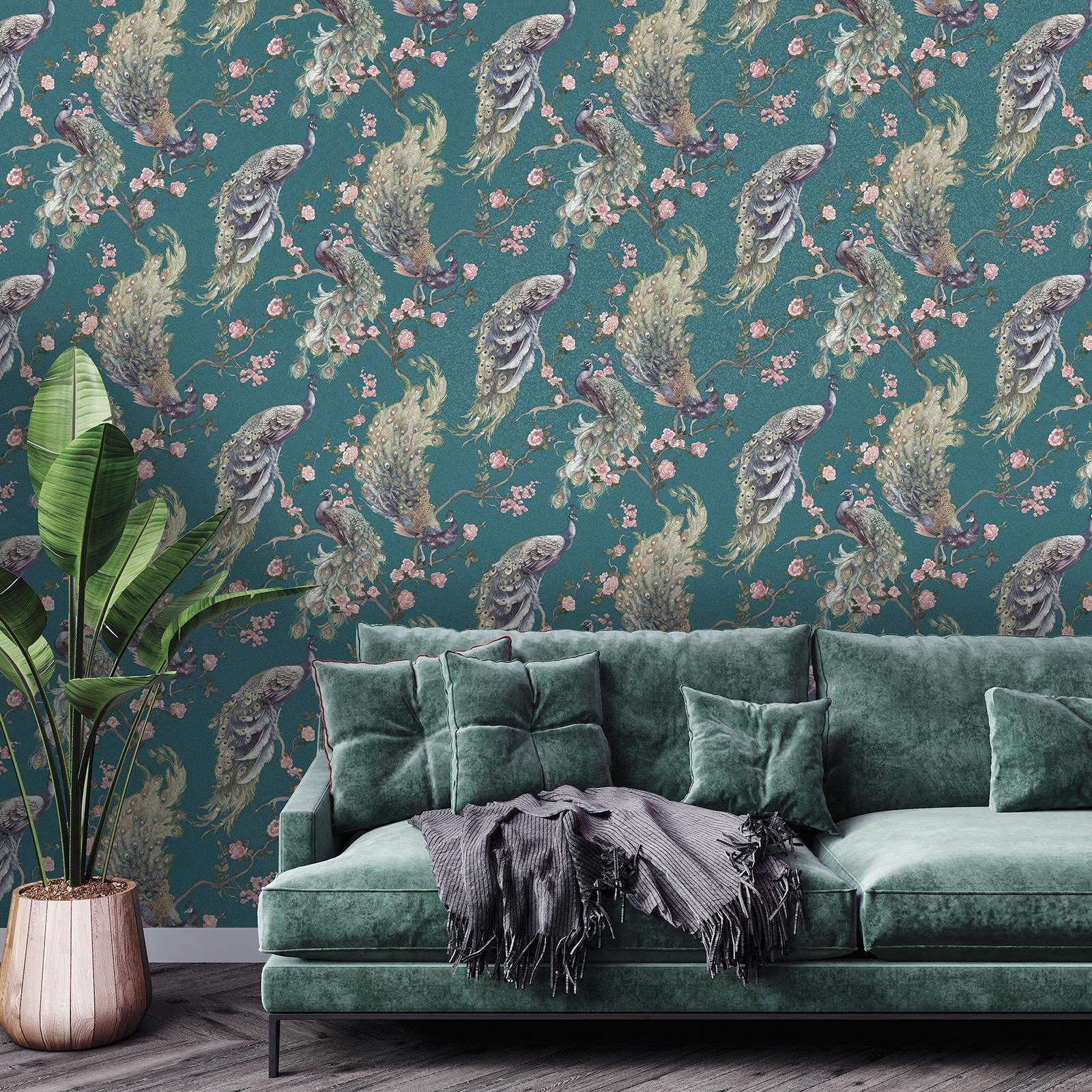 Calculate QuantityYour home will feel more glam with the addition of this lovely Menali Peacock Wallpaper. In addition to a gorgeous flower trail pattern in rich, brilliant shades of green and pink, the design includes a variety of intricate peacocks. This has a turquoise backdrop, a softly textured feel, and is covered in glitter all throughout. This high-quality, heavyweight paper is simple to use and would look equally beautiful when used to adorn a whole room or as a magnificent focal wall.