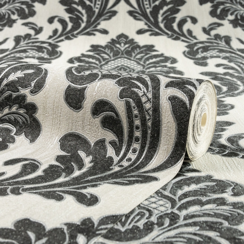 Calculate QuantityFeaturing a classic damask design complete with a rich vinyl texture and glitter detailing. The addition of metallic and glitter effects across the wallpaper really lifts the design to create an amazing look in your home. With this wallpaper being a heavyweight vinyl, it is ideal for using on all four walls to create a sumptuous haven in high traffic areas. Available in a range of colours. Please purchase a sample for true texture.