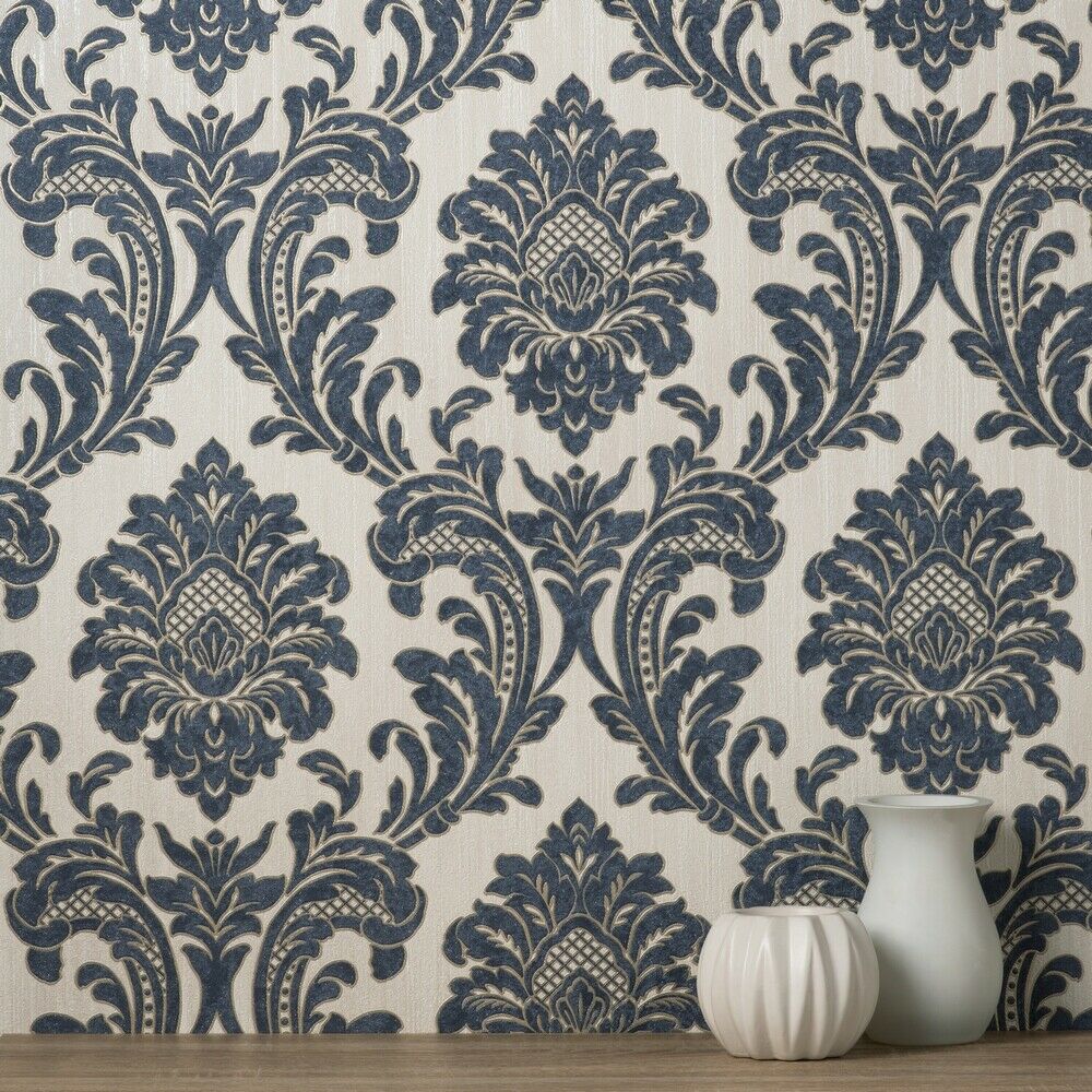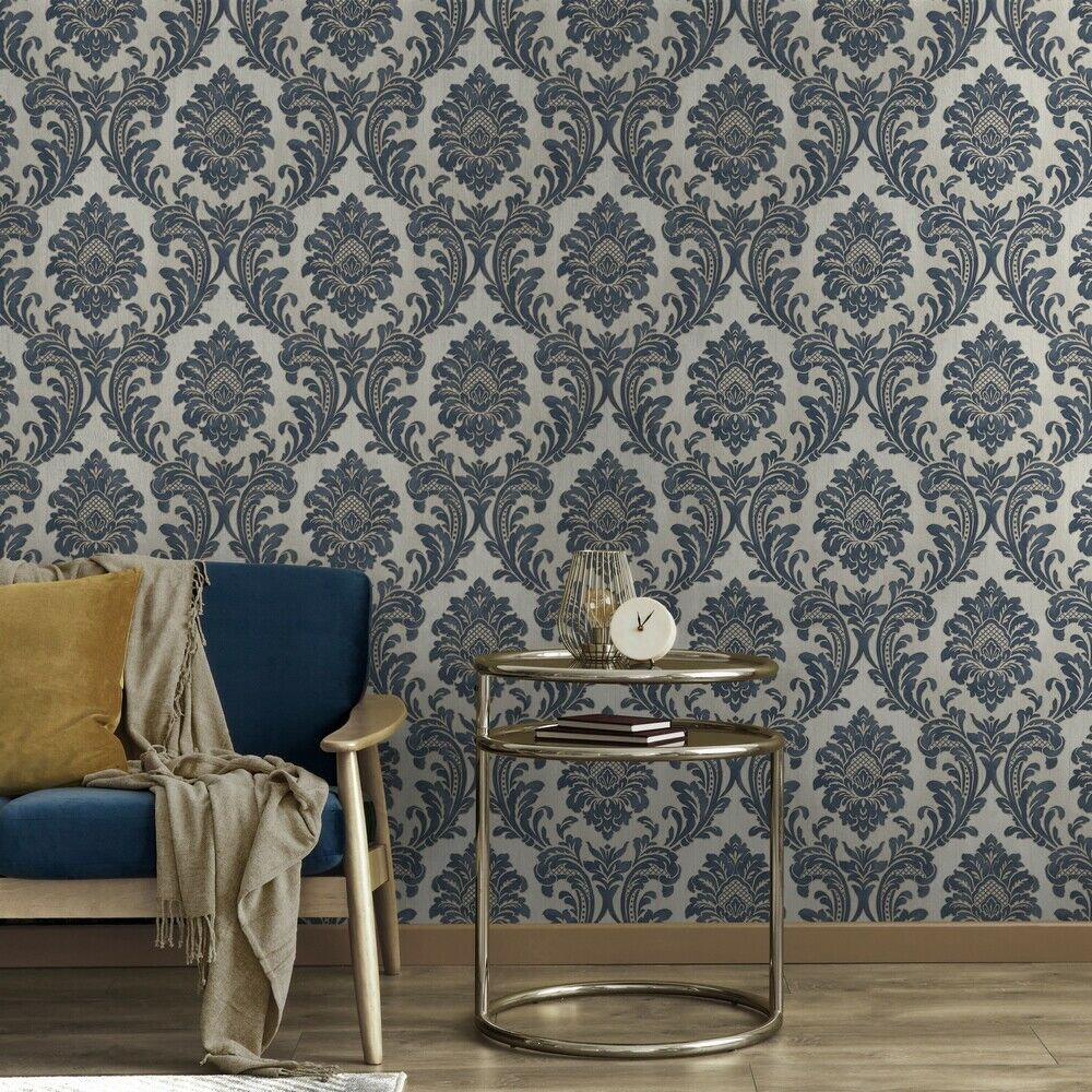 Milano Damask Blue Heavyweight Italian Vinyl Wallpaper M95622