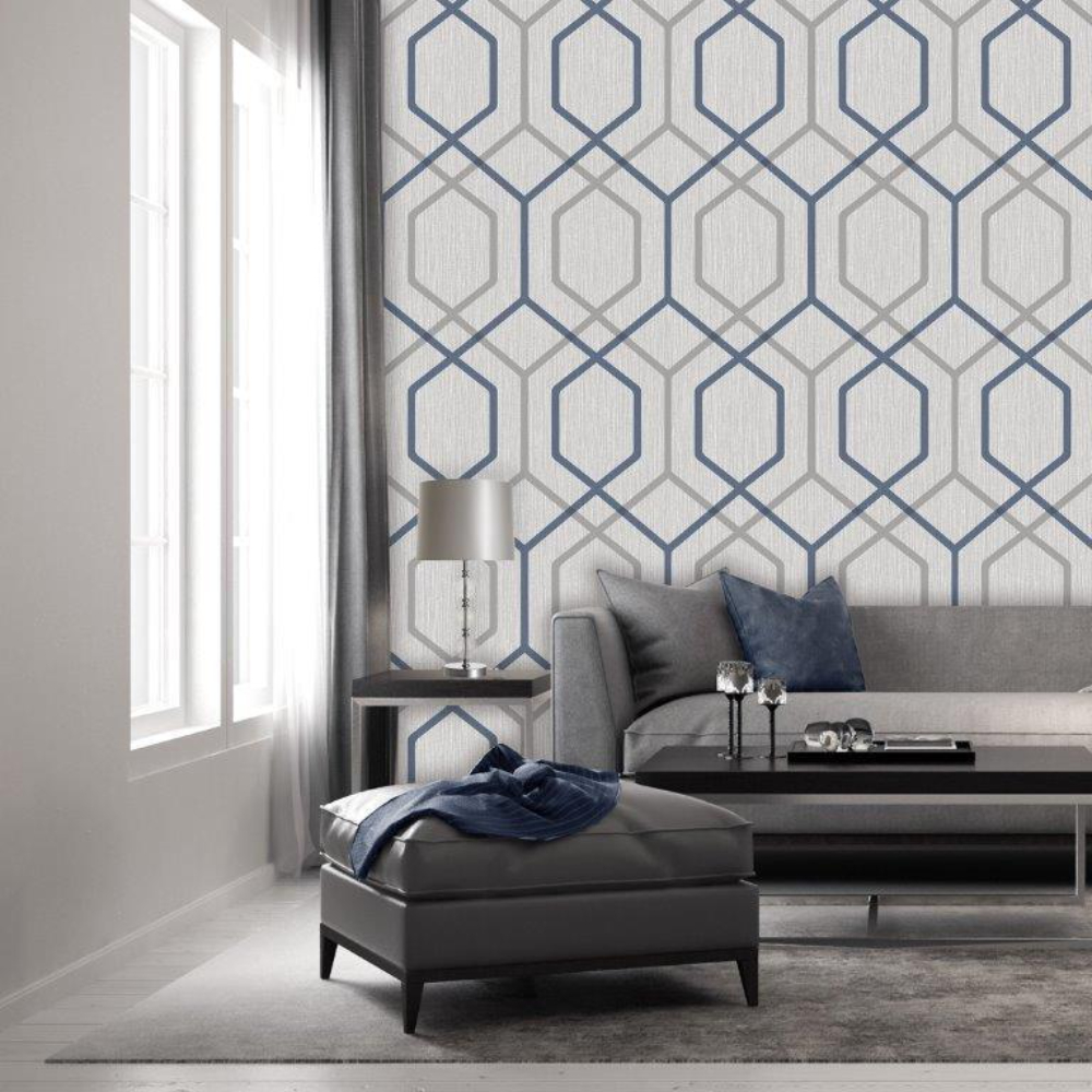 Oria Hex Navy Geometric Wallpaper 6733