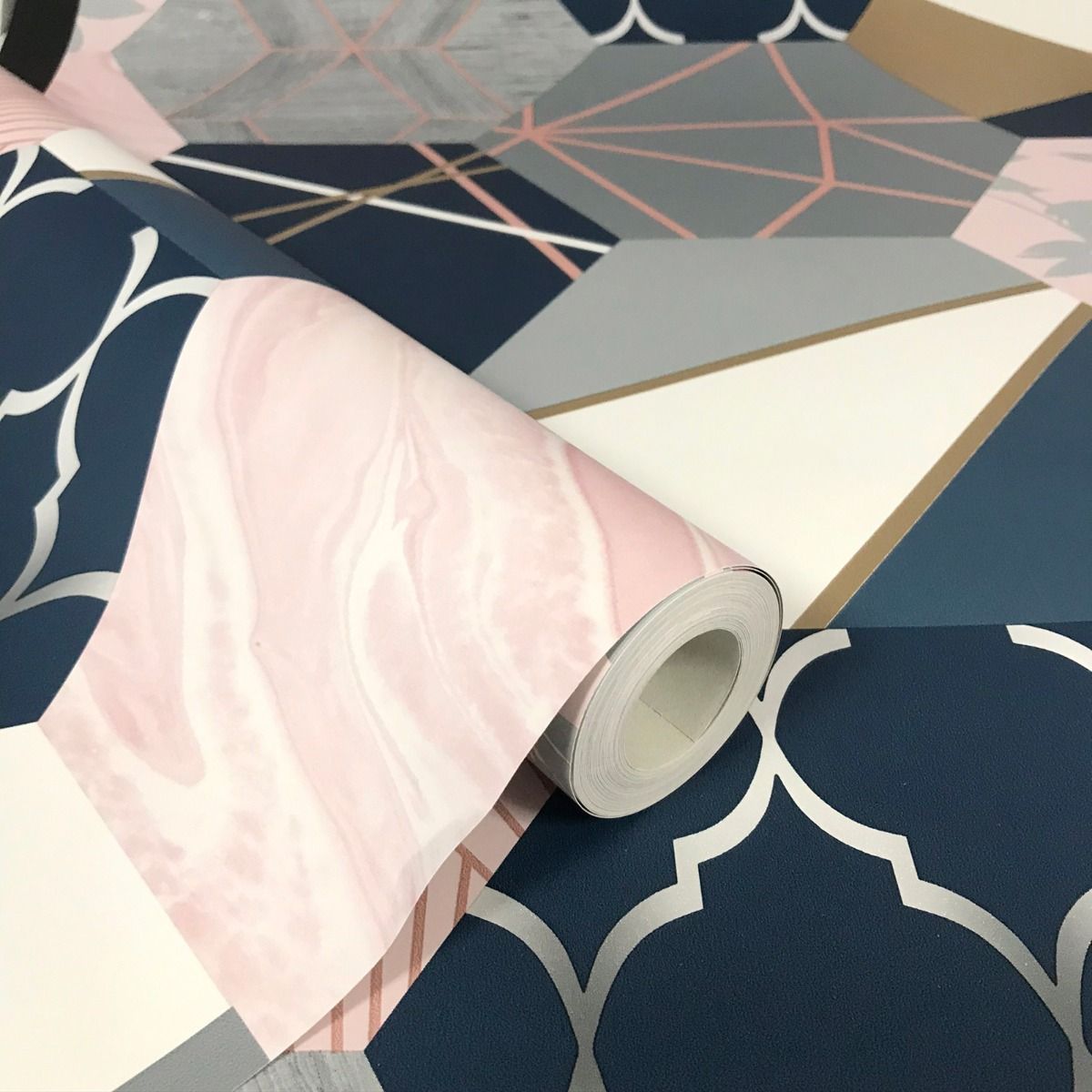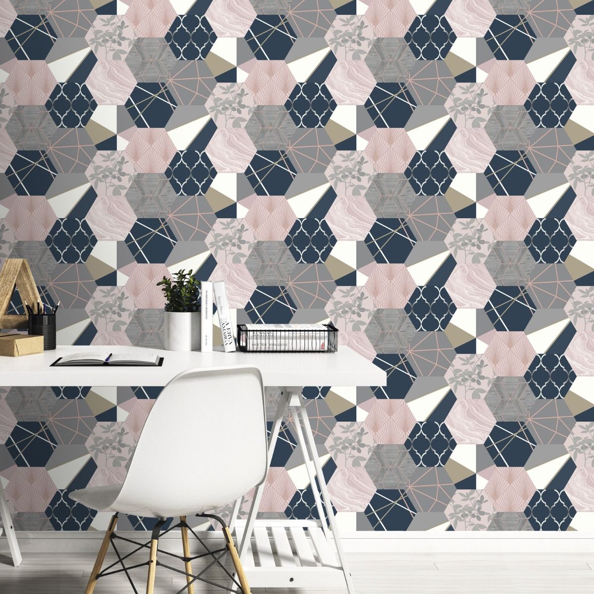 Patchwork Geo Hexagon Navy Wallpaper 215908
